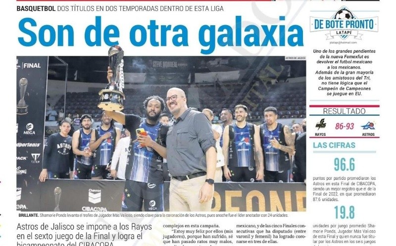 Actualmente, en El Informador hemos seguido los pasos de los Astros de Jalisco desde sus inicios, su cambio de directiva, de colores y sus coronaciones dentro del CIBACOPA, un circuito en donde han podido coronarse como bicampeones y quedarse a la orilla de un posible tricampeonato que habría sido histórico para la franquicia blanquiazul.