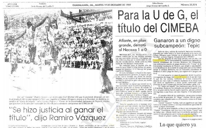 Para ser exactos, la coronación de la UdeG en dicha competencia llegó en diciembre de 1989, momento en donde la gran final del CIMEBA cruzó a los Leones Negros en contra de los Coras de la Universidad Autónoma de Nayarit, esto en un vibrante enfrentamiento que se dio en las vísperas de la Navidad de aquel año dentro del Coliseo Olímpico de la Universidad de Guadalajara.