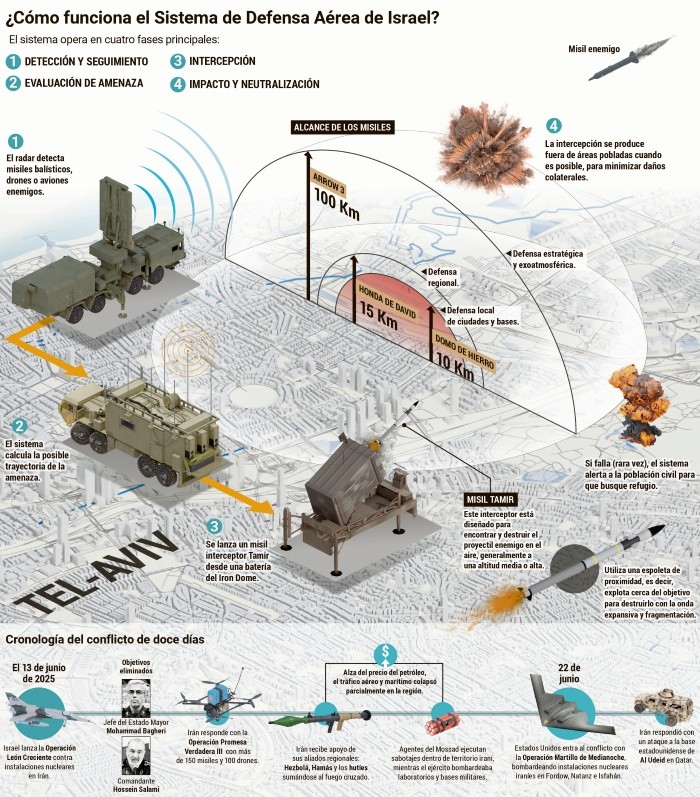 Una alerta y 90 segundos. Esa es la diferencia entre la vida y la muerte en Tel Aviv. Es un estilo de vida, una “costumbre” arraigada en este pueblo donde se tiene la ilusión de que llegará la paz, pero se vive en medio del conflicto, de la guerra, que tiene algunas pausas. Pero nunca un final.Es viernes 13 de junio de 2025. Son las 02:57 horas. Y suenan las alarmas antiaéreas. A los celulares llega un mensaje que advierte sobre una “amenaza significativa”. El texto muestra un símbolo de alerta imposible de ignorar.La gente corre hacia los refugios, algunos en pijama y descalzos; otros salen de bares y restaurantes, algunos con su copa en la mano. Asumen que se trata de una alerta más, una de tantas. Hoy, no. Las televisiones instaladas en los refugios y restaurantes despliegan un cintillo rojo que ocupa más de la mitad de la pantalla. Está escrito en hebreo con una imagen de alerta: “Acudan a los refugios. Se han disparado misiles desde Irán”.Los refugios se llenan sin importar edad, sexo, raza o religión. Lo importante es resguardarse y sobrevivir a los ataques. Las pesadas puertas de acero se cierran y se convierten en la única línea de defensa entre la vida y la muerte. Estos lugares son la muestra de la vida cotidiana en este país. No todos los refugios son subterráneos. Hay cuartos de hotel, bibliotecas, oficinas o cuartos de bebé. Por ley, no existe un solo edificio en Israel que no tenga un espacio de seguridad ante los bombardeos. Y cuando suenan las alarmas se transforman: se corren las cortinas de acero, se sellan sobre la pared de concreto y la luz se va. Todos tienen un lugar en la oscuridad. En los refugios de las playas, los hoteles o los restaurantes, las diferencias entre quienes viven en Israel y los visitantes son más notorios. Los rostros de los residentes dejan ver una tranquilidad: con el celular en las manos, ven videos en TikTok, suben historias a Instagram, envían mensajes por WhatsApp. Del otro lado, los visitantes, toman rosarios o medallas de la imagen milagrosa a la que se encomiendan, frotan sus manos e imploran que todo termine bien. Sin muertos ni heridos. Pero la preocupación en sus rostros es evidente: se les quiebra la voz al preguntar: ¿Qué está pasando? Piden que alguien traduzca lo que dicen la televisión y las alarmas de los teléfonos. Todo es incertidumbre. Angustia. Los padres intentan consolar a sus hijos, les ponen audífonos y música a todo volumen, esperando que no escuchen los misiles. Es imposible. Los niños abrazan las almohadas con ansiedad, dejan de lado sus tabletas, se acurrucan en las esquinas pegados a sus padres.Segundos más tarde, el cielo de Israel se ilumina con el fuego de los misiles balísticos disparados desde Irán. Los tres sistemas de defensa israelíes entran en acción. Y como si se tratara de una película, el ataque se transmite en vivo. La televisión muestra en tiempo real cómo la zona Centro de Tel Aviv recibe los ataques. Es un espectáculo lleno de terror.El Domo de Hierro, el Escudo de David y el Arrow 3, que son los sistemas de defensa israelíes, operan a toda su capacidad, en un despliegue de tecnología que se impone. A pesar de su efectividad -que de acuerdo con el vocero de las Fuerzas Armadas de Israel, Rony Kaplan, se estima entre 90% y 97% para interceptar cohetes, misiles y drones-, algunos misiles logran impactar las calles y edificios. El suelo se cimbra y el sonido del estallido resuena en cada rincón de la ciudad. Comienzan a morir las primeras víctimas.Segundos más tarde, en la televisión se puede ver el momento del impacto y cómo una bola de fuego arde en las calles. La gente en los refugios no puede evitar preguntarse cuántos heridos o muertos hay, dónde caerá el siguiente misil o cuándo terminará esto. Las alarmas se repiten con cada nueva ronda de ataques. Una y otra vez. Los segundos se convierten en minutos. Los minutos parecen horas. Los relojes parecen no avanzar. El miedo se intensifica.Finalmente, hay un silencio. Fueron más de 15 minutos desde que comenzó la respuesta de Irán contra Israel. Luego suena una nueva alarma, pero en esta ocasión anuncia que es seguro salir de los refugios. Los visitantes lo toman con cautela; los residentes no dudan en abandonar el lugar.De forma inmediata, los noticieros transmiten un mensaje del primer ministro, Benjamín Netanyahu, informando el inicio de la operación “León Ascendente”, asegurando que su objetivo es evitar que Irán adquiera la capacidad de generar bombas atómicas. Indica que en esta acción se logró “neutralizar” a los altos mandos de la milicia iraní y a los científicos a cargo del programa nuclear. Por eso la respuesta de Irán fue inmediata: atacaron. Alguien debe pagar.Desde el anuncio de Netanyahu, la escena en los refugios se repite al menos en tres ocasiones durante la madrugada. En el primer día es fácil llevar la cuenta de los misiles lanzados, sus impactos y la cantidad de ataques que Israel recibió por parte de Irán. Con el paso de los días, es imposible. En ocasiones suenan las alarmas, pero no llegan los misiles. En otras, no pasan ni cinco minutos entre salir del refugio y regresar. Así es la vida: el espacio aéreo se cierra, nadie entra y nadie sale de Israel. Están en guerra y todos deben permanecer allí. No son solo los residentes, ahí estamos también los turistas, los que somos ajenos a esta guerra.La vida en Tel Aviv sigue. Así ha sido siempre: desde el holocausto hasta su independencia.A pesar de la prohibición de las reuniones y el cierre de escuelas y negocios no esenciales, al salir el sol se olvida la vida en los refugios. Las calles se llenan de personas haciendo ejercicio y paseando a sus mascotas. Lo hacen junto a edificios destruidos y cristales en el piso. Un contraste de pesadilla. Luego las playas reciben visitantes. Con el paso de los días se nutren de niños y familias que disfrutan, ríen y se olvidan de los refugios, por lo me