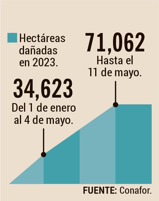 Los incendios forestales no dan tregua en Jalisco. De acuerdo con estadísticas de la Comisión Nacional Forestal (Conafor), del 1 de enero al 4 de mayo hubo 585 eventos de este tipo en el Estado que dejaron afectaciones en 34 mil 623 hectáreas de superficie boscosa.Sin embargo, al 11 de mayo ya eran 707 que aumentaron los daños a 71 mil 062 hectáreas (todo el Bosque de La Primavera tiene 30 mil 500). Uno de los más fuertes en el Estado ocurrió a principios de este mes y provocó que la Secretaría de Medio Ambiente y Desarrollo Territorial (Semadet) activara una alerta atmosférica en los municipios de Chiquilistlán, Zacoalco de Torres, Acatlán de Juárez y Atemajac de Brizuela. Más de 500 brigadistas pertenecientes a dependencias de los tres niveles de Gobierno trabajaron durante casi una semana para extinguir las llamas. El que inició el lunes en el paraje Los Bailarines, en El Arenal y Zapopan, por el cual se activó una alerta atmosférica en esos municipios y también en Guadalajara y Tlaquepaque, se reportó como controlado la tarde de ayer. Los brigadistas también luchan contra incendios en la Sierra del Águila, en Ahualulco de Mercado; en el Cerro de García y Cerro Grande, en Tuxcueca, y en el Cerro El Comal, en Poncitlán. En lo que va del año y hasta el pasado 11 de mayo, los 707 incendios forestales ocurridos en Jalisco han dejado afectaciones en miles de hectáreas de bosque, entre las cuales se encuentra por supuesto arbolado adulto, vegetación que juega un factor fundamental en la producción de oxígeno y la limpieza del aire. De acuerdo con la Comisión Nacional Forestal (Conafor), los incendios forestales registrados en lo que va de 2023 han dejado afectaciones en dos mil 328 hectáreas de arbolado adulto. La cifra representa un incremento del 176% (más del doble) respecto de las 841 hectáreas de este tipo de arbolado que se quemaron en todo 2022. De acuerdo con Omar Castañeda, ingeniero forestal de la División de Incendios Forestales de la Coordinación Municipal de Protección Civil y Bomberos de Zapopan, cuando se tiene un incendio superficial, además de las afectaciones a la vegetación se producen también contaminantes por el humo producido; sin embargo, se considera que un incendio es severo cuando hay afectaciones en el arbolado adulto o de renuevo, es decir, árboles que se encuentran en crecimiento, ya sea por su ciclo natural o por haber sido plantados en reforestaciones previas. “Es un daño mayor porque es más tardada su recuperación, considerando que un árbol para ser autosuficiente tarda entre ocho y 10 años. Un árbol ya adulto que muere, de entre 40 a 60 años, ambientalmente tardaría todavía más años en recuperar las condiciones del bosque para seguir generando los beneficios ambientales que estos generan, que son: la producción de oxígeno, la regulación de la temperatura y del aire, la incorporación de agua a los mantos freáticos, vegetación, fauna, entre otros”, destacó el ingeniero. Si los incendios ocurren año con año en la misma zona, añadió, además se debilita el suelo y se sufre la pérdida del mismo, parte esencial para el arbolado ya que éste representa el alimento de la vegetación, y las capacidades de recuperación de los ejemplares también se pierden. Cuando un incendio forestal daña hierba, arbustos, hojarasca o matorrales, si bien representa afectaciones para los bosques, la diferencia radica, de acuerdo con la Conafor, en que este tipo de materiales se regeneran con mayor rapidez que el arbolado adulto, considerando que esto ocurrirá principalmente en el siguiente temporal de lluvias. Luego de que las autoridades municipales y estatales reportaran la ocurrencia de un incendio forestal ocurrido en el paraje “Los Bailarines”, ubicado en los límites de los municipios El Arenal y Zapopan, la Secretaría de Medio Ambiente y Desarrollo Territorial (Semadet) activó una alerta atmosférica. La misma abarcó a los municipios de El Arenal, Zapopan y Tlaquepaque, y, según dijo la dependencia, fue activada ante a los potenciales riesgos a la salud para la población “debido a las emisiones contaminantes del siniestro”, luego de que se detectara la acumulación de humo en las zonas aledañas a los municipios mencionados. En lo que va del año la Semadet ha emitido al menos 23 alertas atmosféricas (incluyendo la emitida la noche del lunes), de las cuales 17 han sido por incendios forestales. Otras dos se emitieron por incendios en vertederos, una por un incendio agrícola y tres por incendios diversos. Entre ellas, la de mayor duración ha sido la emitida el 15 de diciembre del año pasado para Jalostotitlán y San Juan de los Lagos debido al incendio registrado en un vertedero, misma que tuvo una duración de 510 horas, siendo desactivada hasta el 5 de enero de este año. Le sigue la emitida el 1 de mayo y desactivada apenas el sábado 6 de mayo para la Sierra de Amula, en Chiquilistlán Zacoalco de Torres, Acatlán de Juárez y Atemajac de Brizuela, que tuvo una duración de 120 horas. La misma fue ocasionada a partir de un incendio forestal ocurrido en el paraje las Guásimas. Otra de las Alertas Atmosféricas más extensas fue la declarada el 3 de mayo para los municipios de Cabo Corrientes y Talpa de Allende, la cual desactivada el día 9 de mayo tras 153 horas de permanecer activa. Además de las 20 alertas, las autoridades también han emitido dos Emergencias Atmosféricas al registrar “un episodio extraordinario de contaminación atmosférica que puede presentar riesgos a la salud”. Se trató de la emitida el 23 de febrero pasado, por un periodo de cuatro horas, para los municipios de Tala y Tlajomulco de Zúñiga, por un incendio forestal ocurrido en el predio de Los Volcanes del Bosque la Primavera, y de la emitida por 23 horas del 30 al 31 de marzo pasados derivado del incendio forestal en el predio de El Trapiche-La Sierrita, afectando al municipio de Tala. El pasado 10 de may
