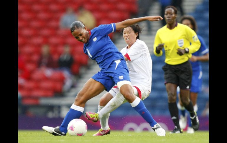 GLASGOW, INGLATERRA (28/JUL/2012) - La selección francesa de futbol femenino goleó 5-0 a su par de Corea del Norte, este sábado en Glasgow, en partido de la segunda fecha del grupo G de Londres-2012.