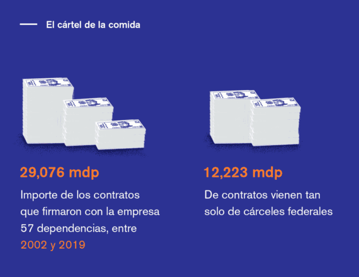 Eran las 13 horas y miles de reos del Penal Estatal de Puente Grande en Jalisco esperaban su turno para pasar frente al cocinero que con el cucharón servía a cada uno el menú del día: sopa de lentejas, ceviche de soya, frijoles de la olla, salsa roja y tres tostadas. Pero algo en ese plato no olía bien y hubo quienes prefirieron aguantar el hambre hasta la cena y devorar una porción de frijoles de la olla, pan dulce y café con leche.Después, como cada noche, los presos se encaminaron hacia sus celdas. No habían llegado a ellas cuando muchos empezaron a sentir dolor de estómago y de cabeza, diarrea, sudores y náuseas. Hacia las 23:00 horas quedó claro que la noche de ese 24 de mayo de 2014 no sería igual a las demás.Los quejidos y los gritos de auxilio a la enfermería hicieron sonar las alarmas. Los reos pelearon por el único retrete dentro de sus congestionadas celdas. Quienes no lograron abrirse paso entre sus compañeros tuvieron que defecar o devolver el estómago ahí mismo en el suelo.No se trató de una decena de reos intoxicados; tampoco de 450 como reportó el gobierno a la prensa en los días que siguieron. Según documentos, hasta ahora inéditos, 683 reos, la mayoría jóvenes, cayeron enfermos, 640 con diarrea. La escena era dantesca. La de ese día fue una de las intoxicaciones más numerosas en la historia reciente de las cárceles en América Latina.Los internos enfermaron de salmonelosis, causada por una bacteria que viaja en las heces de animales y humanos, y que las autoridades encontraron en 81 muestras tomadas a los enfermos, según informó el 28 de mayo el Laboratorio Estatal de Salud Pública. La “probable fuente de infección” fue el ceviche de soya que les sirvieron ese día.“Estábamos en shock”, recordó José, exmiembro del Cártel de Jalisco Nueva Generación, que estaba preso y que recuerda haber visto a muy pocos médicos y enfermeros atendiendo el brote. “¿Qué va a pasar? ¿Cuántos nos vamos a morir?”, la idea le atormentó aquella noche. José, que pidió la reserva de su nombre completo, dijo que la cárcel estuvo a punto del descontrol; los custodios y las autoridades se vieron sobrepasadas.La crisis se diluyó días más tarde y, para fines oficiales, el contrato por casi 196 millones de pesos (mdp) que tenía La Cosmopolitana siguió en pie y el capítulo quedó cerrado con una sanción de 331 mil pesos y un donativo por 720 mil para remodelar la cocina. Esta no era la primera crisis relacionada con la comida que protagonizó esta compañía y tampoco fue la última.De acuerdo con un informe inédito que elaboró la Comisión Nacional de Seguridad, justo la comida y la falta de agua para beber estuvieron entre las principales razones que animaron el motín en Islas Marías, Nayarit, el 2 de febrero de 2013. La revuelta dejó 32 heridos, algunos de ellos por impactos de bala, y causó graves daños a edificios y vehículos, como muestran fotografías en poder de este medio.Además, una revisión de cientos de páginas de auditorías, informes, amparos de presos y quejas ante Derechos Humanos, además de una serie de estudios hechos entre reos y custodios, reveló que persistieron los problemas con la calidad, la cantidad y la higiene de los alimentos.En un estudio más reciente, realizado por académicas del Centro de Investigaciones y Estudios Superiores en Antropología Social (CIESAS) y del Centro de Investigación y Docencia Económicas (CIDE) en 2017, los custodios y empleados de cuatro cárceles federales se quejaron de recibir comida en mal estado; algunos dijeron haber encontrado hilos, larvas, gusanos y cucarachas en sus alimentos. La proveedora, La Cosmopolitana, es una empresa propiedad de la familia Landsmanas y forma parte del Corporativo Kosmos (CK).Una investigación de más de un año realizada por VICE y Quinto Elemento Lab reveló que esta compañía se ha convertido, sigilosamente, en el monopolio del servicio de comidas para un enorme número de mexicanos cautivos.Según los 704 contratos a los que tuvo acceso este equipo de investigación, en 2002 este proveedor tenía negocios con el gobierno por al menos 6 millones de pesos (mdp). En 2009, por 343 mdp. Para 2018 tenía contratos por más de 5 mil millones de pesos.De acuerdo con esta investigación, Corporativo Kosmos tiene tal fuerza que ha logrado contratos por al menos 29 mil 76 millones de pesos entre 2002 y lo que va de 2019 una tercera parte sin licitación–. Esto, sin contar los que firmó con Pemex y sus subsidiarias, y que la paraestatal se negó a entregar.Las empresas de Corporativo Kosmos alimentan a los enfermos que duermen en el IMSS, a los niños en guarderías del DIF, a los atletas del alto rendimiento y a trabajadores que pasan semanas en las plataformas marinas de Pemex, damnificados y policías. También dan de comer al personal administrativo, custodios y reos de 14 penales federales, a presos de las 15 cárceles de la Ciudad de México y de prisiones en otros estados; a funcionarios en secrtarías de Estado e incluso a quienes fueron a parar a El Torito en una noche de excesos.El 19 de febrero, en una entrevista con el noticiero Panorama Informativo, de Grupo ACIR, el nuevo director de Centros Penitenciarios Federales, Francisco Garduño, se refirió a La Cosmopolitana, sin llamarla por su nombre. Hay una empresa “que está en todos lados”, dijo, y aseguró que los contratos que tiene con las cárceles federales son “leoninos”.Al día siguiente, el Presidente Andrés Manuel López Obrador anunció en rueda de prensa que presentará un informe acerca de los monopolios de venta de comida y medicamentos a gobierno, y habló de revisar los contratos.Diversas fuentes informaron a este medio que Julio Scherer Ibarra, actual consejero jurídico de la Presidencia y persona cercana a López Obrador, fue abogado de La Cosmopolitana y de Productos Serel, otra de las empresas de la familia Landsmanas. Esta información fue confir
