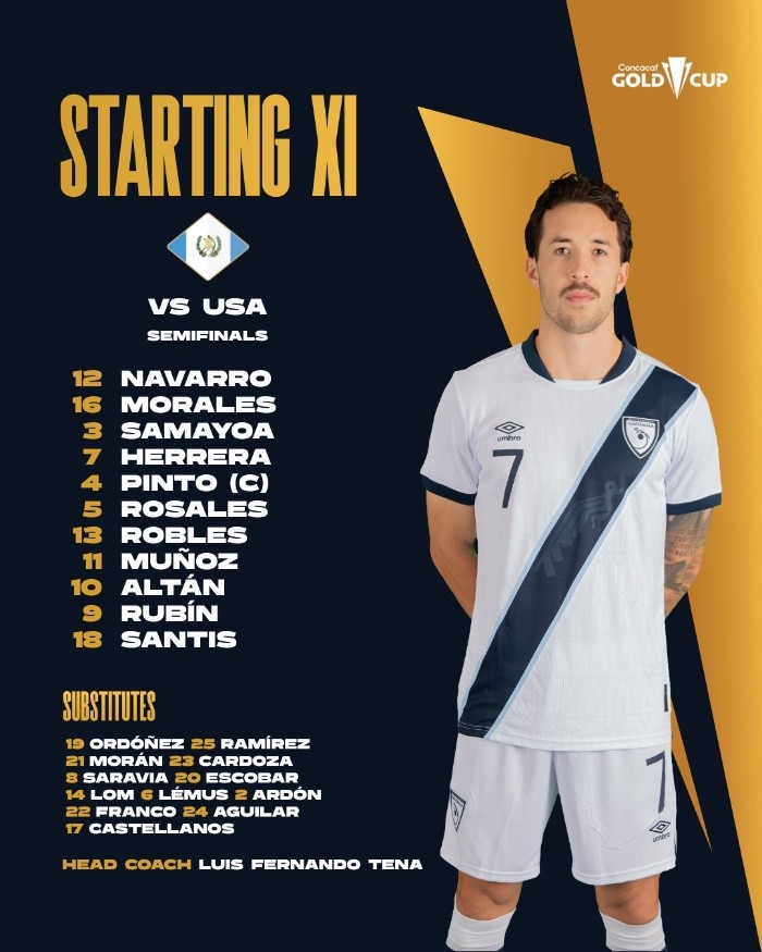 Deportes | Estados Unidos vs Guatemala: minuto a minuto de la semifinal de la Copa Oro Estados Unidos y Guatemala se enfrentan esta tarde en busca de obtener el boleto a la final de la Copa Oro 2025 Moisés Figueroa 2 de julio de 2025 - 18:50 hs Estados Unidos2 ‒ 1Guatemala Final del Partido Con dos goles de Diego Luna, la selección de Estados Unidos derrota a Guatemala y obtiene el pase a la final de la Copa Oro 2025. 90+1 ¡Cerca Guatemala! Morales saca un disparo de larga distancia y Freese manda el balón a tiro de esquina. 82' ¡Perdona Estados Unidos! Freeman remata de cabeza y sale el balón a las manos de Navarro. 79' ¡Goooooooooooooooooooooooooooooooool de Guatemala! Escobar define con parte interna y descuenta para Guatemala. 64' ¡Por poco Estados Unidos! Agyenmang remata de cabeza, pero Navarro desvía a tiro de esquina. Inicia el segundo tiempo Se reanudan las acciones en el Estadio Energizer Park. Termina el primer tiempo Estados Unidos se va al descanso con la ventaja de 2-0 frente a la selección de Guatemala. 45' Se agregan 3 minutos al primer tiempo 42' ¡Cerca otra vez Estados Unidos! El portero Navarro desvía el balón tras un cobre de tiro libre por parte de Estados Unidos. 33' ¡Se salva Estados Unidos! Rubín le gana la espalda a los defensores y saca un disparo dentro del área que desvía el portero estadounidense. 25' ¡Por poco Guatemala! Santis remata de cabeza y el balón pasa por un costado del poste. 16' Responde Guatemala Rosales se anima de larga distancia, pero el balón sale desviado del arco estadounidense. 14' ¡Goooooooooooooooooooooooool de Estados Unidos! Diego Luna hace una bicicleta quitando a sus rivales de encima y saca un disparo raso pegado al poste imposible para el portero. 10' ¡A nada Estados Unidos! Tillman se anima con un disparo de fuera del área y el balón pasa muy cerca del arco. 3' ¡Gooooooooooooooooooooooooooooool de Estados Unidos! Diego Luna aprovecha el rebote del arquero Navarro que se equivoca y ya lo gana el equipo de las barras y las estrellas. Inicia el partido El árbitro hace sonar su silbato y comienza a rodar el balón en el Estadio Energizer Park. Alineación de Guatemala Este es el once ue manda Luis Fernando Tena: Alineación de Estados Unidos Así sale al terreno de juego la escuadra estadounidense dirigida por Phochettino: Temas Selección de Estados Unidos Selección de Guatemala Copa Oro 2025 Lee También Centro de detención “Alcatraz de los Caimanes” en Florida recibirá al primer grupo de inmigrantes México vs Honduras • Momentos destacados • Semifinal • Copa Oro EU detiene envío de armas a Ucrania tras revisar su gasto militar Sergio Ramos comparte mensaje tras la eliminación de Monterrey