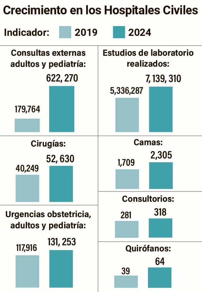 En los últimos seis años, los Hospitales Civiles de Guadalajara tuvieron un crecimiento “histórico”, asegura el director general, Jaime Andrade Villanueva. Se modernizaron todas las salas, creció el número de quirófanos y la planta laboral (médicos y enfermeras), además de que se inauguraron nuevas áreas de atención y entró en operación el nuevo nosocomio en Tonalá.Con más de 40 obras de intervención en distintos espacios de los hospitales “Fray Antonio Alcalde” (Antiguo) y “Juan I. Menchaca” (Nuevo), se llevó a cabo “la remodelación del más alto calado que se tenga registro desde que se fundó el Hospital. Consistió prácticamente en la remodelación de todas las salas originales del Antiguo Hospital Civil, por ejemplo, con los espacios apropiados para los pacientes, con equipo médico biotecnológico, de cómputo y mobiliario nuevo”.Durante su gestión al frente del Organismo Público Descentralizado se inauguró la nueva Unidad de Atención Integral para Niñas, Niños y Adolescentes con Quemaduras, la más grande y mejor equipada de México. El área de hemodiálisis también fue modernizada y expandida, pues pasó de 23 unidades a 50.Además, con un impulso importante a la atención a la salud mental, se incrementaron las visitas en el área de psiquiatría y paidopsiquiatría, ya que actualmente cuentan con cinco mil consultas al año. Y se abrieron 10 nuevos quirófanos de alta especialidad para cirugías complejas, como oncológicas, trasplantes y cardiología.Mientras que el personal médico pasó de siete mil 434 plazas en 2019 a nueve mil 021 autorizadas en 2025. Por otra parte, en el Nuevo Hospital Civil “Juan I. Menchaca” se ampliaron los espacios para atender a niños con cáncer y cumplir con los estándares internacionales, se modernizó la unidad de alta especialidad materno-infantil con áreas de cuidados intensivos obstétricos, medicina materno-fetal y cuidados intensivos neonatales. También se amplió y se rehabilitó la unidad de cuidados paliativos para adultos, el centro de atención respiratoria integral y el centro regional de atención integral de hematología y oncología pediátrica, referente a nivel nacional e internacional de la atención especializada en cáncer infantil.“Aumentaron las camas y se generaron los quirófanos para el área de trasplante de médula ósea. En la unidad de cuidados intensivos para los niños con cáncer se amplió muchísimo el área de quimioterapia ambulatoria y toda la infraestructura de seguimiento de los pacientes de atención nutricional y psicológica. También se remodelaron aulas y el auditorio de enseñanza e investigación. No es pintar un área, sino equipar las nuevas, y eso nos generó la necesidad de más personal. Incrementamos el número de personas que teníamos, particularmente en las áreas médicas y de enfermería”. Con la extensión del Hospital Civil de Oriente, afirmó el director general, se podrán atender a 500 mil pacientes de municipios de Jalisco y desahogar el flujo de personas del “Fray Antonio Alcalde” y “Juan I. Menchaca”, sobre todo en el área de urgencias. Todas estas acciones han hecho que los Hospitales Civiles hayan recibido distintos reconocimientos internacionales a lo largo de seis años, como el “World’s Best Hospitals”, que los ubican entre los 15 mejores hospitales públicos y privados de México.La modernización y remodelación de todas las áreas de los Hospitales Civiles “Fray Antonio Alcalde” y “Juan I. Menchaca” permitió que la atención médica de pacientes creciera en, al menos, 100% para algunas especialidades; sin embargo, aún falta ampliar urgencias, para atender la alta demanda de personas sin seguridad social que acuden a estos centros médicos, y terminar el Hospital Civil de Oriente para dar cobertura a alrededor de 500 mil personas en esta zona de la ciudad. En el caso de este último, mencionó Jaime Andrade Villanueva, director general de los Hospitales Civiles de Guadalajara, aún falta por concluir el segundo edificio que será el área de hospitalización. Actualmente recibe entre 200 y 250 pacientes al día, y cuenta con 480 camas. Se espera que sea concluido este año para atender a la zona Oriente del Área Metropolitana de Guadalajara y a 11 municipios aledaños. “El edificio B, que es donde están las áreas de urgencia, más todo lo que va a ser la hospitalización y los quirófanos, ya está por operar, pero falta la conclusión de las áreas de quirófanos, terapias y todo lo de diagnóstico y tratamiento, como rayos X y toda esa parte de hospitalización, que teóricamente se concluye este año”.Gran parte de los pacientes que acuden “Fray Antonio Alcalde” provienen de la zona Oriente de la ciudad, por lo que una vez que todas las áreas del hospital de Tonalá estén operando y en funcionamiento, ya no será necesario que sean derivados a los hospitales de Guadalajara, señaló el director general.Por su parte, si bien se logró ampliar la atención en el área de urgencias, la gran demanda exige que esta especialidad siga creciendo y modernizándose. “El reto sigue siendo la gran cantidad de urgencias que existen, tanto traumatológicas como quirúrgicas y médicas; prácticamente todo lo refieren a los civiles porque aquí es donde está la especialidad. Pero además, otros cuatro Estados (Nayarit, Zacatecas, Michoacán y Colima) nos refieren muchísimos pacientes, incluyendo urgencias y pacientes con enfermedades graves, que incluso pueden ser manejadas como ambulatorias”, señaló.Con todo, durante la gestión de Andrade Villanueva se amplió el servicio de urgencias para poder atender la gran demanda de pacientes. No obstante, aún se requiere dicha área para pediatría, además de terapia intensiva, ya que es necesario ampliar estas por la gran cantidad de emergencias que existen. “Me parecería que esos son los pendientes o proyectos a corto, mediano y largo plaz