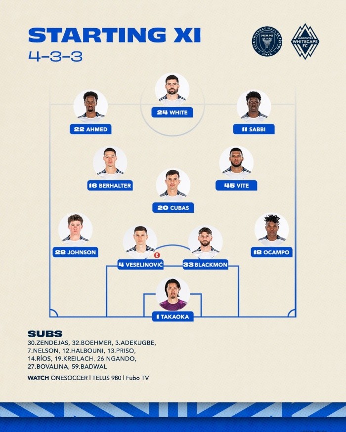 Deportes | Inter Miami vs Vancouver • Momentos destacados • Concachampions Inter Miami y Vancouver Whitecaps se enfrentarán en el partido de vuelta de las Semifinales de la CONCACAF Champions Cup en el Estadio Chase Sergio Alejandro Velázquez 30 de abril de 2025 - 16:30 hs MIAMI1 ‒ 3VANCOUVER Fin del partido 79' Messi vuelve a fallar Sergio Busquets hace un pase a Lionel Messi, quien realiza un remate con la izquierda desde fuera del área y termina saliendo del campo muy cerca del palo derecho tras un ligero desvío. 71' ¡Gooooooooool de Vancouver! Sebastian Berhalter recibe un pase de Emmanuel Sabbi para rematar desde el centro del área y liquidar al Miami, asegurando su avance a la Final del torneo. 65' Amarilla para Vancouver Andrés Cubas recibe la tercera amonestación para los Whitecaps. 63' Miami con una modificación Salió Telasco Segovia para dekar entrar a Allen Obando. 62' Amarilla para Miami Telasco Segovia se lleva la tercera amonestación del conjunto local. 56' Modificaciones en ambos equipos En Inter Miami salen Federico Redondo y Maximiliano Falcón para dejar entrar a Benjamín Cremaschi y Gonzalo Luján. En Vancouver sale Brian White y entra Daniel Ríos. 53' ¡Vancouver hace más grande la ventaja! Pedro Vite consigue el segundo del partido para los Whitecaps y complica aún más las circunstancias para Miami. PEDRO VITE! The Whitecaps take the lead! �� pic.twitter.com/Xc6WR2jR6a — Concacaf Champions Cup (@TheChampions) May 1, 2025 51' ¡Gooooooool de Vancouver! Brian White remata con la izquierda desde el centro del área tras una asistencia de Sebastian Berhalter para empatar el encuentro. Brian White sends it to the back of the net! ⚽�� pic.twitter.com/84L5Ek2bhs — Concacaf Champions Cup (@TheChampions) May 1, 2025 Comienza el segundo tiempo Se termina la primera mitad 45+1' Amonestación para Miami Federico Redondo es amonestado para el conjunto local. 45' Agregan 2 minutos al primer tiempo 45' Amarilla para Vancouver Sebastian Berhalter recibe la segunda amarilla para los Whitecaps. 41' Takaoka frena a Messi Lionel Messi realiza un tiro libre desde la zona izquierda del campo que va directo hacia el arco, pero el arquero de Vancouver logra rechazar el balón que termina fuera del campo. 38' Disminuye el ritmo del partido Tras la anotación de Miami y breves intentos de ambos equipos, las acciones de ataque han tardado en llegar y el partido se desarrolla con un ritmo tranquilo. 33' Vancouver también con amarilla Tate Johnson recibe amonestación por una falta sobre Messi. 24' Primera amonestación para Miami Maximiliano Falcón recibe la primera tarjeta amarilla del partido para el equipo local. 18' Messi falla su primera oportunidad Lionel Messi consigue el balón por primera ocasión frente a la portería de Takaoka, sin embargo, no logra definir bien el disparo y lo manda por arriba de la portería. 13' Vancouver cerca del gol Emmanuel Sabbi remató el poste tras un disparo desde el centro del área; las oportunidades para ir a la ofensiva se empiezan a equilibrar. 9' ¡Goooooool de Miami! Luis Suárez realiza un pase a Jordi Alba, quien dispara con la izquierda desde el interior del área para darle el primero a los locales en su búsqueda de la remontada. ¡Jordi Alba abre el marcador para Inter Miami! �� pic.twitter.com/ugnYwva4vv — Concacaf Champions Cup (@TheChampions) May 1, 2025 7' El partido arranca con disputa de posesión El encuentro se desarrolla sin mostrar ningún bando dominante hasta el momento, ambos conjuntos buscan comenzar sus ofensivas desde el medio campo, pero el constante cambio de posesión engloba las acciones hasta el momento. Comienzo el partido El árbitro da el silbatazo y se empieza a disputar el partido de vuelta de Semifinales. Previa del partido Este miércoles se disputará el partido de vuelta de las semifinales de la Concacaf Champions Cup entre Inter Miami y Vancouver Whitecaps en el Estadio Chase. Los canadienses llegan con ventaja de 2-0, por lo que el equipo de Messi necesita una remontada con al menos tres goles para llegar a su primera final continental. Inter Miami, que viene de perder su invicto en la MLS ante FC Dallas y caer al quinto lugar del Este, se enfrenta a unos Whitecaps en gran forma, líderes del Oeste tras su reciente victoria sobre Minnesota. ¿Cuándo y dónde ver el Inter Miami vs Vancouver? El partido comenzará a las 18:00 (hora del centro de México) y se transmitirá en vivo por streaming en Tubi. SV Alineación de Vancouver Alineación de Miami Temas Lionel Messi Futbol Internacional Liga de Campeones de Concacaf (Concachampions) Lee También Exportación de automóviles enfrenta cambios clave en sus condiciones Peso mexicano sigue con su buena racha ¿Es malo lavar los trastes con cloro? Irán acusa a Israel de genocidio ante la CIJ