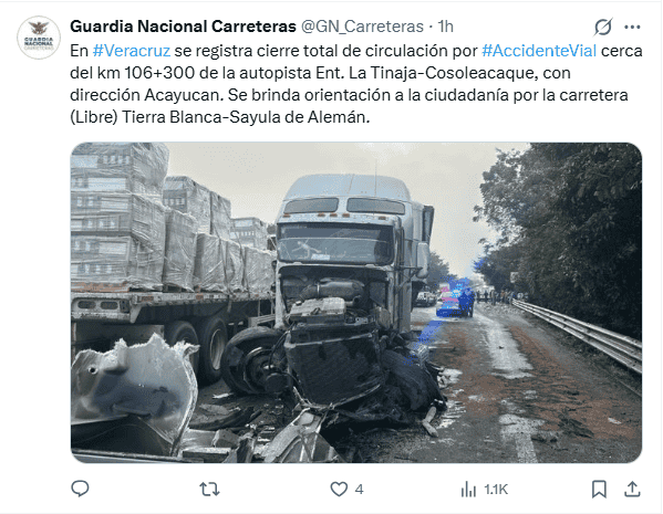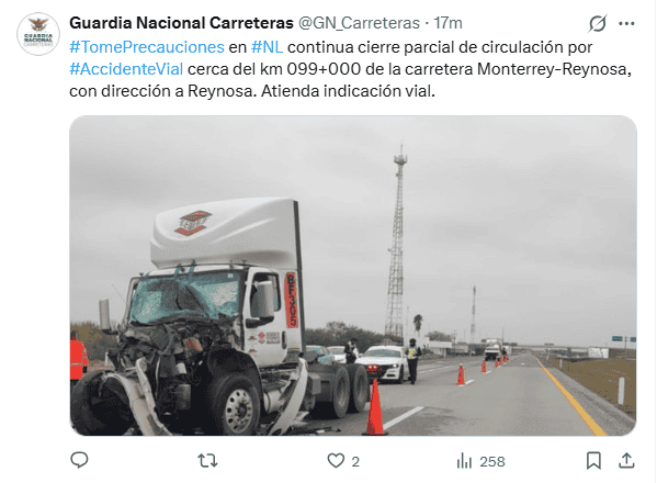 Publicación de la Guardia Nacional. X / @GN_Carreteras