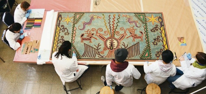 Una de las tareas capitales que lleva a cabo el Instituto Nacional de Antropología e Historia (INAH) es la conservación del patrimonio cultural. Y durante 2018, sus especialistas se encargaron de restaurar una diversidad de bienes y elementos arquitectónicos de nuestro país, entre los que destacan el Paraguas del Museo Nacional de Antropología (MNA), la cabeza momificada de una guacamaya, así como indumentarias tradicionales y de época, pintura mural, obras de arte, acervos documentales y edificaciones prehispánicas.Lo anterior, con la intensión de conservar en las mejores condiciones los tesoros culturales y artísticos de nuestro país para la presente y futuras generaciones.La belleza de EhécatlEl Adoratorio de Ehécatl, ubicado dentro la estación Pino Suárez de la Ciudad de México, fue objeto del más importante trabajo de conservación desde su apertura pública en 1969. El INAH instaló cédulas, fotografías y un videomapping que muestran a los usuarios la trascendencia histórica del monumento mexica. Los especialistas recuperaron el aspecto que debió tener este templo dedicado al dios mexica del viento, construido hacia el año 1400, bajo el gobierno del tlatoani Huitzilíhuitl.Los colores del chamánOtra pieza intervenida por estudiantes y profesores de la ENCRyM fue la Tabla Nierika, atribuida al artista chamán José Benítez Sánchez, en la que se aprecian coloridos elementos que forman parte de la cosmovisión wixárika. Es una de las cinco tablas huicholas elaboradas con la técnica de estambre pegado con cera de Campeche sobre un soporte de madera, que forman parte del acervo del Museo Regional de Nayarit.La vuelta de la guacamaya La Escuela Nacional de Conservación, Restauración y Museografía (ENCRyM) realizó trabajos de conservación del colorido plumaje de una guacamaya bandera, momificada de manera natural en la cueva Avendaños, Chihuahua, junto con su cráneo y la amplia variedad de artefactos elaborados con fibras naturales, materiales vegetales y piel de animales, descubiertos en un contexto, posiblemente mortuorio, de dos mil años de antigüedad.Paraguas reluciente Restauradores del MNA intervinieron el Paraguas, fuente invertida ubicada en el patio central del recinto museístico, con lo que volvió a lucir impecable tras cuatro meses de labores de limpieza profunda con la técnica alemana ice-blaster (pellets de hielo seco aplicados con presión controlada), que permitió eliminar totalmente la suciedad y sales acumuladas durante más de medio siglo. La obra fue diseñada en 1964 por el arquitecto Pedro Ramírez Vázquez y es considerada un hito de la ingeniería y la arquitectura mexicana.El cocodrilo camina de nuevo En los talleres de la escuela también se intervino un cocodrilo (Crocodylus acutus) taxidermizado, pieza representativa de las colecciones del Museo Regional de Nayarit; tenía deterioros ocasionados por factores ambientales, envejecimiento y abrasión.Fotos: Cortesía • INAH