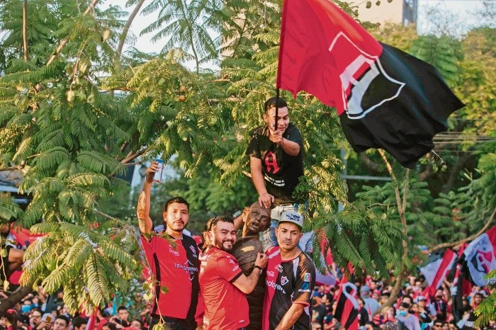 Al ritmo de “el que no brinque es chiva”, “olé, olé, campeón, campeón”, “cómo no te voy a querer” y entonando la canción de El Murguero, la afición, enfundada en su playera rojinegra, esperaba ansiosa por la llegada de sus nuevos ídolos, los que hicieron que experimentaran un sentimiento hasta este momento desconocido.