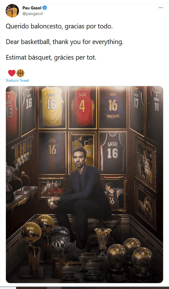 El pívot Pau Gasol anunció este martes su retiro. Así, el español pone fin a una exitosa carrera que le convirtió en uno de los mejores jugadores europeos de la NBA, donde conquistó dos anillos, y en uno de los deportistas más importantes de la historia de su país, durante un acto en Barcelona.A los 41 años, el gigante catalán se despide con un extenso palmarés: tres veces campeón de Europa, el mayor de los hermanos Gasol ganó dos veces la NBA con Los Angeles Lakers, convirtiéndose en el primer español en hacerlo, además de ser campeón del Mundo con España en 2006 y de conquistar tres medallas olímpicas (dos platas y un bronce).Con la voz algo temblorosa por la emoción, Gasol compareció en una sala del Gran Teatro del Liceo, en el corazón de Barcelona, donde el pívot había convocado a los medios y a excompañeros, técnicos y allegados, para informar de su decisión."Estoy aquí para comunicaros que (…) me voy a retirar del baloncesto profesional. Es una decisión difícil. Como os podéis imaginar, después de tantos años, pero es una decisión meditada, hay que cambiar un poco de marcha, y también saber disfrutar", explicó.Gasol se despide tras una reflexión tranquila que encaró después de disputar sus quintos y últimos Juegos Olímpicos en Tokio, donde su gran recorrido le valió ser elegido miembro de la comisión de atletas del Comité Olímpico Internacional (COI).Tras caer en cuartos de final contra Estados Unidos en Saitama, oficializó su retirada de la selección española, pero mantuvo la incógnita sobre su carrera. Hasta este martes.Guiado por su afán de llegar a los Juegos Olímpicos, Gasol había fichado en febrero por el club donde arrancó su carrera, el Barcelona, que mantenía la puerta abierta a que se quedara más tiempo.Finalmente, ha decidido dejar las canchas apenas unos meses después de haber vuelto a la competición en abril, tras dos temporadas sin jugar por una fractura en el escafoides tarsiano de su pie izquierdo, que amenazó con adelantar su retirada."Una de las cosas que quería era acabar jugando y disfrutando, no por una lesión, no en muletas y con operaciones", explicó.En su vuelta a casa, Gasol consiguió la que fue su segunda liga con el Barça desde la que levantó en su primera temporada como miembro del equipo profesional azulgrana (2000-2001). Solo la Euroliga se le ha resistido.Poco después, dio el gran salto a la NBA como número 3 del draft, donde empezaría el viaje de casi dos décadas que construyó su leyenda. Con 21 años recaló en los Memphis Grizzlies (2001-2008), donde fue reconocido como novato del año, antes de unirse a Los Angeles Lakers (2008-2014), el club en el que viviría su mayor gloria.Con la camiseta del equipo californiano, Gasol conquistó los anillos de 2009 y 2010 junto a su gran amigo Kobe Bryant, un "hermano mayor" para Pau, que quedó "devastado" tras su fallecimiento en un accidente el año pasado.Seis veces All-Star, después de los Lakers pasó por los Chicago Bulls (2014-2016), San Antonio Spurs (2016-2019) y, a lo largo de 2019, por Milwaukee Bucks y Portland Trail Blazers, desde donde volvería a Europa mirando a Tokio.Con él, se va también el último superviviente de los "Juniors de oro", la generación liderada por José Manuel Calderón, Felipe Reyes o Juan Carlos Navarro que tantas alegrías dieron al básquet español llevándola a la etapa más exitosa de su historia.¿Quieres saber más?Si quieres tener más contenido, más imágenes y aún más noticias, entonces descarga INFORMAPlus, la aplicación digital de EL INFORMADOR, donde tenemos materiales exclusivos para ti.Descarga la aplicación y pruébala GRATIS por treinta días.Si eres suscriptor de EL INFORMADOR tu acceso está incluido, solicítalo al 33 3678-7777OF