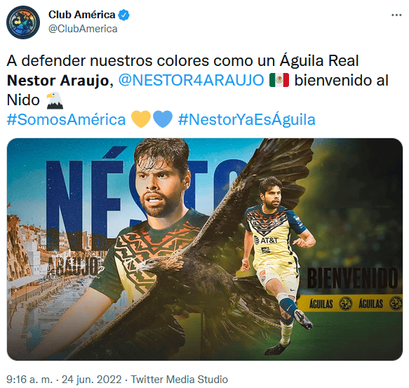 Néstor Araujo ya está en México y ya fue anunciado como nuevo refuerzo del América.El defensor dejó España para volver a la Liga MX y vestirse con los colores de las Águilas, el equipo rival al de sus amores, las Chivas.Sí, alguna vez el central mexicano reveló que tanto él como su familia son apasionados seguidores del Guadalajara."Siempre mi familia y yo habíamos sido de Chivas", dijo Néstor en una entrevista con Fox Sports cuando aún era jugador de Santos.Y estas palabras se unen a las de sus padres, quien afirmó las declaraciones de su hijo: "Toda la familia somos Chivas; muero contento si lo veo vestir la playera de Chivas", añadió.OA