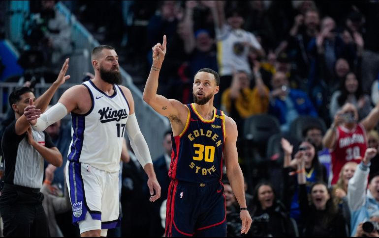 El alcance y la precisión de Stephen Curry desde el perímetro han sido únicos durante mucho tiempo, ya sea con uno o dos defensores en la cara o al lanzar desde el logo.Ahora, el líder histórico de la NBA en triples ha alcanzado un nuevo récord: el base estrella de Golden State es el primer jugador en la historia de la liga en alcanzar los cuatro mil encestes de tres puntos. Lo logró un día antes de cumplir 37 años.Su triple cuatro mil llegó desde la banda derecha, bajo presión tras un pase de Moses Moody a 8:19 del final del tercer cuarto, en su cuarto intento de la noche frente a los Kings de Sacramento.Los aficionados se pusieron de pie de un salto y aplaudieron cuando Curry anotó, y un homenaje se proyectó en la pantalla gigante durante un tiempo muerto poco después.El dos veces MVP de la NBA necesitaba dos triples antes del juego. Anotó su primer triple desde la banda izquierda a 5:35 del final del primer cuarto.Atrapado por Keegan Murray y DeMar DeRozan, Curry falló en su segundo intento, después de que su compañero Draymond Green anotara los primeros seis puntos con un par de triples y el jugador de 2.13 metros Quinten Post también anotara dos triples.Curry golpeó el aro frontal en su siguiente intento, un tiro de 30 pies cuatro minutos antes del medio tiempo.Curry anotó cinco triples en la victoria del lunes 130-120 contra Portland. Su primer triple en la carrera llegó el 30 de octubre de 2009, en Phoenix.El entrenador de los Kings, Doug Christie, recuerda cuando los números de Reggie Miller parecían astronómicos."Eran (2 mil 560) con Reggie Miller y era como, 'Whoa, eso está fuera de control'", dijo Christie antes del partido, y luego elogió a Curry.Curry, quien se convirtió en el jugador 26 en la historia de la NBA en anotar 25 mil puntos durante la victoria en casa del sábado pasado sobre Detroit, está en su temporada 16 en la NBA y no muestra signos de detenerse a pesar de sus noches ocasionales de descanso para cuidar sus rodillas delicadas.En diciembre de 2021, Curry superó el entonces récord de Ray Allen de 2 mil 973.Curry podría tener compañía en el club de los 4 mil eventualmente. El guardia de los Clippers, James Harden, es el siguiente en la fila con 3 mil 127 y la estrella de los Bucks, Damian Lillard, detrás de él con 2 mil 794."Steph, es algo como nunca hemos visto", dijo el entrenador de Portland, Chauncey Billups. "Ha sido divertido ver su viaje y observar su carrera y su ascenso a la grandeza. Tuve el placer de jugar con él cuando tenía 21 años en el equipo de Estados Unidos."Eso fue antes de que se convirtiera en este tipo, que podías decir que iba en camino. Es un trabajador incansable, una gran persona como todos sabemos, así que estoy feliz por su éxito. Lo que ha hecho no me sorprende. Pasas tanto tiempo con él todos los días que entiendes su ética de trabajo, y ha sido simplemente asombroso. Es divertido de ver, no es divertido entrenar contra él".