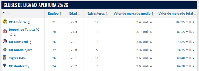 Este viernes nueve de enero inicia el torneo Clausura 2026 de la Liga MX y se comienzan a perfilar nuevamente los equipos favoritos para quedarse con el campeonato. Toluca apunta a un tricampeonato y hay pocos rivales que verdaderamente podrían hacerle frente. América, Cruz Azul, Chivas, además de los equipos regios, son siempre candidatos y recurrentes en fases finales. Todos estos equipos tienen un factor en común que, poco a poco, ha comenzado a segmentar la tendencia de campeonatos y clasificaciones durante los últimos torneos: la inversión.Los campeonatos europeos como la Premier League de Inglaterra, La Liga de España, la Bundesliga de Alemania o las ligas domésticas de Italia y Francia son dominadas por un máximo de tres equipos, esto debido a que han construido su dominio a través del dinero: fichajes de alto valor económico y deportivo. Este fenómeno, aunque en menor medida, está siendo replicado en la Liga MX. Tan solo los semifinalistas del torneo pasado (Toluca, Monterrey, Cruz Azul y Tigres) cuentan con una plantilla superior a 60 millones de euros, según la plataforma Transfermarkt. En comparación, Santos, equipo que se quedó en la línea del Play-In, tiene una plantilla cincuenta millones de euros más barata que la del campeón Toluca. De los últimos quince torneos, al menos uno de los cinco equipos mencionados ha estado en fase de liguilla, y a partir del Clausura 2024 se han clasificado los cinco equipos a la fase de eliminación. En diez de estos quince torneos, uno de estos equipos ha sido campeón y en once ocasiones al menos uno de ellos ha disputado la final. Equipos como Chivas, Pachuca y León también son plantillas valiosas que entran en las estadísticas de estos quince torneos, repartiendo las otras cinco finales; sin embargo, han perdido protagonismo frente a los ya mencionados.Para equipos como Necaxa, San Luis, Santos, Puebla, Juárez, Mazatlán o Querétaro, pensar en un campeonato es cosa de proeza, siendo un símil de lo logrado por el Leicester City en Inglaterra (equipo ascendido en 2015 y campeón en su primer torneo), el Lille en Francia o el Bayer Leverkusen en Alemania, rompiendo la hegemonía de los equipos favoritos (PSG y Bayern Múnich, respectivamente). Tendrían que luchar contra titanes para poder consagrarse campeones. El último equipo del bloque bajo de la liga que pudo conseguir una hazaña así fue el Atlas, con su bicampeonato en 2021-2022; sin embargo, en los torneos posteriores a su último título solo ha vuelto a jugar una fase de eliminación. Se debería partir a los equipos en tres bloques para mejorar su análisis con base en su rendimiento en los últimos torneos. En la parte alta se posicionarían los cinco equipos ya mencionados y siempre favoritos a coronarse: América, Toluca, Cruz Azul, Tigres y Monterrey, además de Chivas, que actualmente es el cuarto club más valioso del torneo (74.4 millones de euros, según Transfermarkt).En el bloque medio se encuentran clubes que clasifican constantemente y que son complementarios en liguilla: Pachuca, Xolos, Pumas, León, Necaxa, San Luis y Juárez. Estos últimos tres logran buenos torneos gracias a sus contrataciones; sin embargo, su esquema de negocios hace que no puedan mantener una plantilla competitiva debido a la venta de jugadores relevantes.Por último, en el bloque bajo se ubican los equipos que ocasionalmente logran clasificar a liguilla y que normalmente rondan los últimos lugares: Mazatlán, Puebla, Atlas, Querétaro y, últimamente, Santos. Estos clubes, además de no frecuentar la zona de clasificación, registran bajas entradas en sus partidos, malas contrataciones y directivas caóticas.El torneo Clausura 2026 comienza con el Mundial en el horizonte y dieciocho clubes compitiendo por ser el monarca del fútbol mexicano. El “Big Six” seguirá compitiendo en la cima del torneo con refuerzos de calidad, seleccionados nacionales y jóvenes promesas; el bloque medio buscará ser el caballo negro del torneo y arrebatarle el campeonato a los poderosos, mientras que el bloque bajo se mantendrá a flote para evitar la multa por quedar en el último lugar de la general. El campeonato comienza este viernes nueve de enero a las 19:00 horas con el partido Mazatlán vs. Juárez.