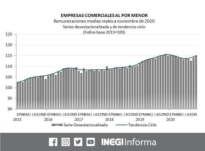 Gracias a la extensión de la campaña de El Buen Fin, en noviembre pasado las ventas minoristas tuvieron uno de sus mejores meses dentro del proceso de recuperación que inició en mayo, de acuerdo con los datos más recientes publicados por el Instituto Nacional de Estadística y Geografía (Inegi).Los ingresos reales por suministro de bienes y servicios de las empresas comerciales al por menor presentaron un alza de 3.3% en noviembre de 2020 respecto al mes inmediato anterior, más que compensando la baja de 0.2% reportada en octubre y superando el 1.2% estimado por los especialistas.Ocho de los nueve principales componentes de las ventas al menudeo tuvieron un crecimiento mensual, pero las ventas de productos textiles, las automotrices y las de artículos de ferretería fueron las que más se beneficiaron, pues crecieron por encima del índice general, explicó Daniel Arias, analista económico de Monex.A nivel de subcomponentes, 16 de 22 rubros incrementaron sus ingresos, destacando el avance de 5.4% mensual en las ventas de automóviles y camionetas, de 5.8% en las ventas de ropa y de 11.9% en las ventas de las tiendas departamentales. No obstante, estas últimas habían sufrido un desplome de 15.7% durante el mes de octubre, por lo que el alza del mes compensa solo parcialmente las pérdidas, agregó el especialista en su análisis.Pese al buen desempeño de las ventas al menudeo durante el penúltimo mes del año, se mantienen 4.7% por debajo de los niveles reportados un año antes. Solo cuatro de los componentes presentan ingresos superiores a los de hace un año, mientras que el resto presentan rezagos, en su mayoría de dos dígitos.NR