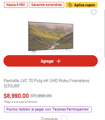 Con la llegada de la campaña de Julio Regalado, Soriana dio inicio a una temporada de promociones, descuentos exclusivos y precios bajos tanto en sus puntos de venta físicos como en su página web.Durante este periodo, los consumidores pueden aprovechar para adquirir diversos productos más baratos o con mayores facilidades de pago en diversos departamentos, como lo son electrodomésticos, papelería, abarrotes, vinos y licores, entre otros.Este equipo ofrece una experiencia visual envolvente con imágenes ultranítidas y colores vibrantes. Sus características otorgan un realismo excepcional en cada escena.Precio: De 26 mil 890 pesos a 19 mil 490.Características:Precio: de 34 mil 990 a 18 mil 990CaracterísticasEsta pantalla ofrece una experiencia visual de alto nivel gracias a su procesador α5 4K con inteligencia artificial de sexta generación.Precio: de 17 mil 990 pesos a 12 mil 990CaracterísticasGracias a su tecnología Pure Color, este equipo ofrece una experiencia visual envolvente.Precio: de 29 mil 990 a 18 mil 990 pesos.CaracterísticasCon una resolución de 3840 x 2160 píxeles, esta Smart TV ofrece imágenes nítidas, colores vibrantes y detalles realistas.Precio: de 11 mil 990 a 8 mil 990 pesos.Características:Recuerda que estas promociones solo estarán vigente durante un periodo de tiempo limitado. * * * Mantente al día con las noticias, únete a nuestro canal de WhatsApp * * *MB