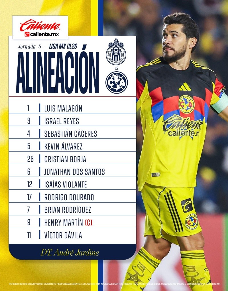 Este sábado se disputa la edición 263 del Clásico de México, con América decidido a frenar el paso perfecto de Chivas en el estadio Akron, dentro de la Jornada 6 del Clausura 2026 de la Liga MX.