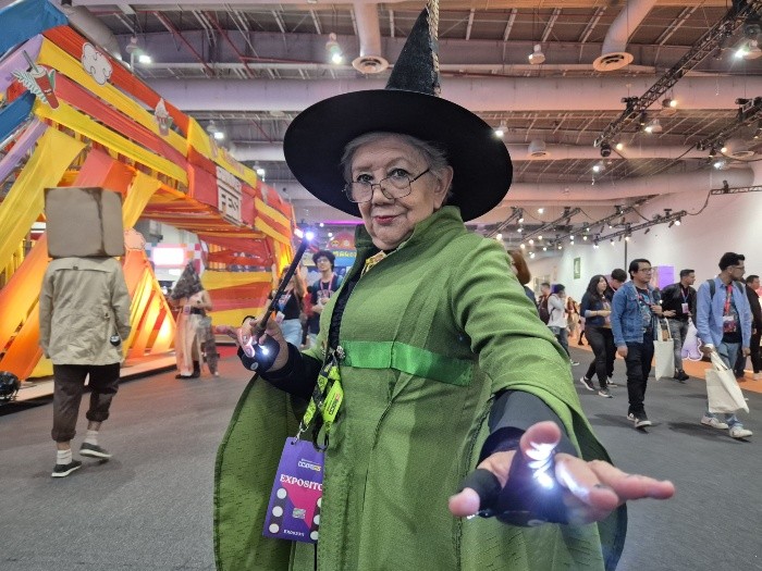 La edad no es pretexto para las artes exigentes del cosplay. En la CCXP México 2025 se veían niños, jóvenes, pero también adultos mayores. Rosa María, de 70 años, fascinaba a la gente por su reluciente traje de "Minerva McGonagall", la exigente pero querida maestra de "Harry Potter". Sonriente, feliz entre la gente que le pedía una foto, Rosa María hizo gala de su destreza con una varita mágica que despedía luz, y unos movimientos de floritura de sus manos que también iluminaban en su trayecto.