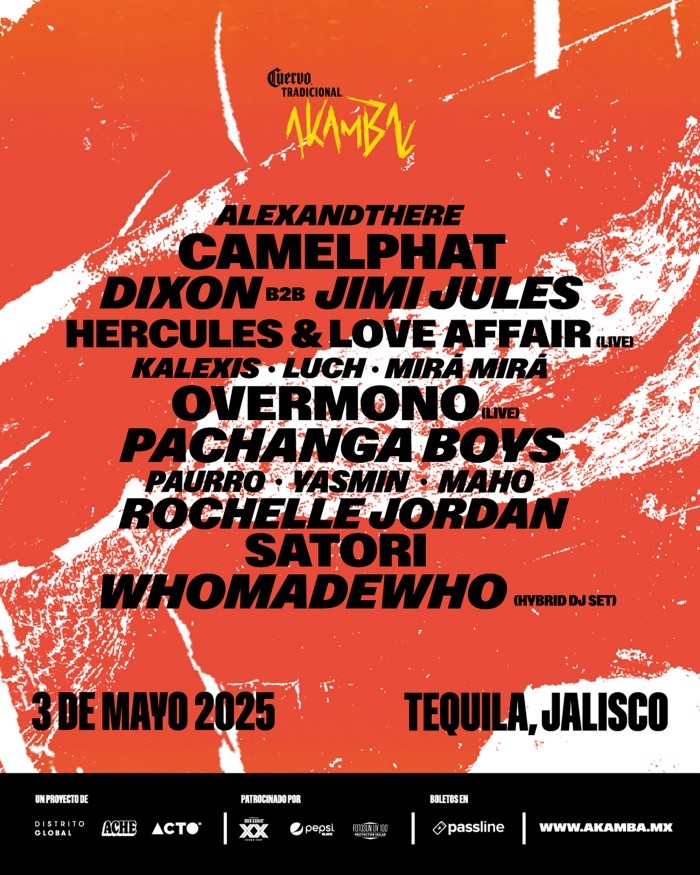 Este 3 de mayo, el fuego vuelve a los campos de agave en Tequila, Jalisco, con la esperada sexta edición de Akamba, presentado por Cuervo Tradicional. Y como parte esencial del ritual, la música toma el protagonismo con un line up de alto calibre que reúne a algunas de las figuras más influyentes de la escena electrónica global, además de una sólida representación del talento emergente nacional.Para acompañar la experiencia, la playlist oficial de Akamba, disponible en Spotify, ofrece un recorrido sonoro diseñado para sumergirse por completo en el espíritu del festival: fuego, ritmo y tierra.El cartel de este año está encabezado por nombres que han marcado la evolución de la música electrónica contemporánea:La playlist oficial de Akamba no es solo un adelanto del festival: es una experiencia en sí misma. Curada especialmente para acompañar el trayecto hacia Tequila o revivir la energía de la pista desde cualquier lugar, ofrece una mezcla que va desde el techno introspectivo hasta el pop experimental y el house más eufórico.Con miles de seguidores y descargas, esta selección sonora busca amplificar el espíritu del festival y conectar a los oyentes con el paisaje, el cuerpo y la emoción. Akamba ha consolidado su identidad como uno de los festivales más importantes de México, gracias a su fusión de arte, gastronomía y entorno natural. A lo largo de sus ediciones ha contado con la participación de artistas como Disclosure, Sofi Tukker, Polo & Pan, Monolink, Toro y Moi, Bomba Estéreo y BADBADNOTGOOD. Este 2025 no es la excepción.Así que si ya estás en Tequila o a punto de partir, no olvides ponerle play a la playlist oficial y dejarte llevar por la música que le da vida al fuego. MR