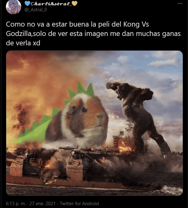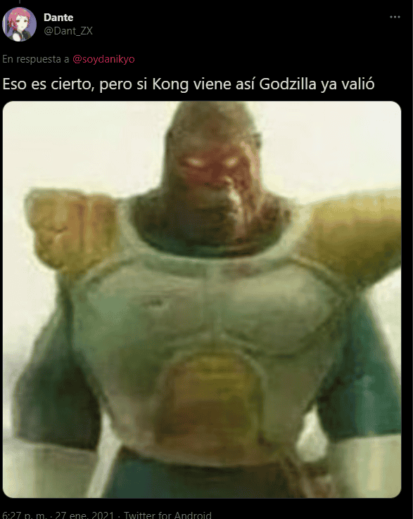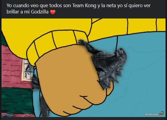 Desde hace varios días, en redes sociales usuarios debaten sobre quién es el mejor monstruo en tre “Godzilla” y “King Kong”, debido a que recientemente Warner Bros. y Legendary revelaron el primer tráiler de la película. Algunos tomaron con humor este enfrentamiento y comenzaron a compartir memes sobre “Godzilla vs Kong”.“En el pedo de Kong vs Godzilla yo le voy a Kong, no me importa si pierde, me gusta más kong”, “La bolsa de Kong luego de partirle su madre a Godzilla” y “No puedo dejar de ver a Kong interrumpiendo un intento de Godzilla para darle la mano y hacer las paces”, son algunos de los comentarios compartidos a través de Twitter.En” Godzilla vs. Kong” habrá un choque de leyendas cuando se enfrenten en una espectacular batalla milenaria y que pone al destino del mundo a pender de un hilo. “Kong” y sus protectores emprenderán un peligroso viaje para encontrar su verdadero hogar. Con ellos está “Jia”, una joven huérfana con la que el gigante tiene un vínculo único y poderoso. En el camino se cruzan inesperadamente con el de un “Godzilla” enfurecido que va causando destrucción a su paso por el mundo. El choque épico entre los dos titanes —provocado por fuerzas invisibles— es solo el comienzo del misterio que se esconde en las profundidades del núcleo de la Tierra.La película dirigida por Adam Wingward es protagonizada por Alexander Skarsgård (Big Little Lies, The Little Drummer Girl), Millie Bobby Brown (Stranger Things), Rebecca Hall (Christine, El profesor Marston y la Mujer Maravilla), Brian Tyree Henry (Joker, Spider-Man: un nuevo universo), Shun Oguri (El tiempo contigo), Eiza González (Rápidos y furiosos: Hobbs & Shaw) y Julian Dennison (Deadpool 2). También cuenta con las actuaciones estelares de Kyle Chandler (Godzilla: el rey de los monstruos) y Demián Bichir (La monja, Los 8 más odiados).La película se estrenará en cines a nivel internacional a partir del 25 de marzo de 2021, asimismo, estará disponible en HBO Max de manera simultánea.AC
