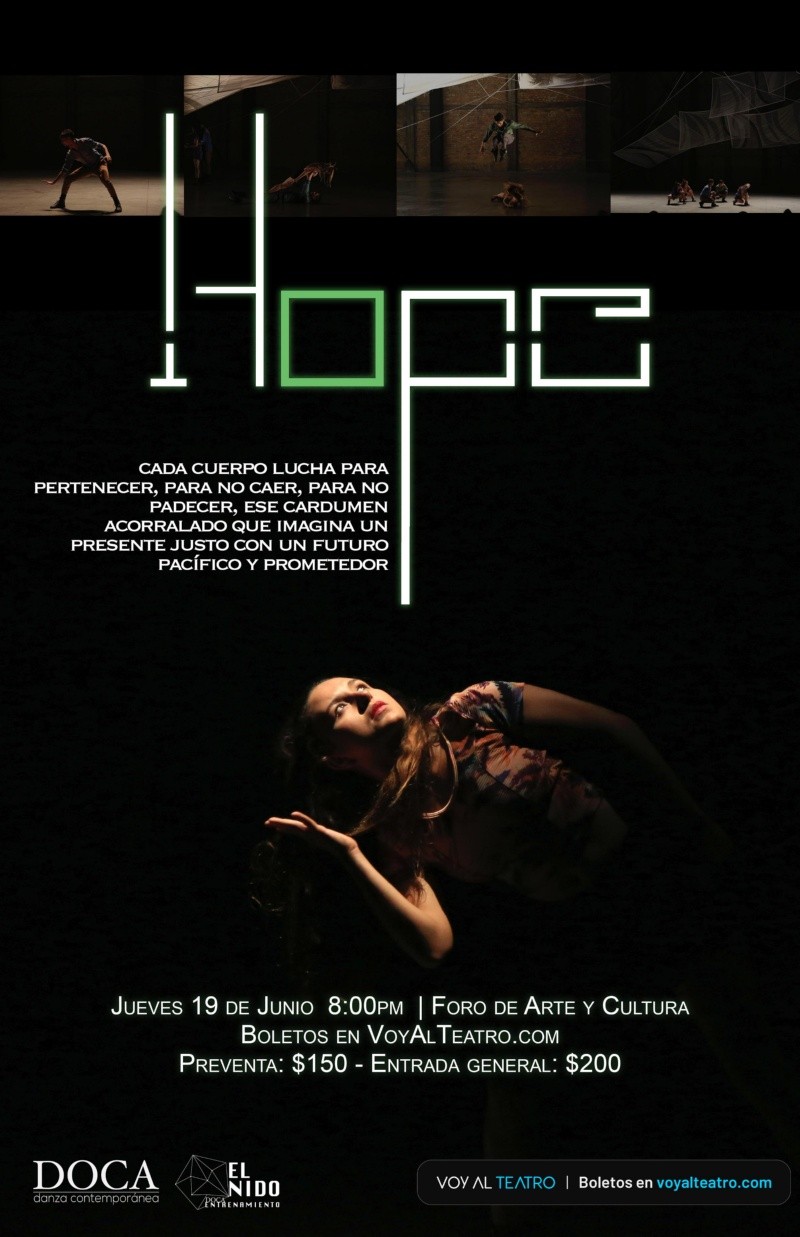 DOCA danza contemporánea y El Nido, escuela de danza contemporánea, presentan HOPE, una función dancística que reúne a 26 intérpretes en escena. La cita es el próximo jueves 19 de junio a las 20:00 horas en el Foro de Arte y Cultura en Guadalajara. DOCA danza contemporánea es una compañía basada en Guadalajara, Jalisco, especializada en la creación y producción escénica. Con 15 años de experiencia y un largo historial de espectáculos en México y Estados Unidos.HOPE es una obra de danza contemporánea que refleja a la sociedad mexicana actual. Posicionada desde una visión feminista, cada cuerpo en escena lucha por pertenecer; por no caer, por no padecer. La pieza escénica hace del pensamiento, la emoción y el movimiento, un solo grito de esperanza.La función del próximo jueves 19 de junio se celebrará en el marco del décimo aniversario de la creación de HOPE, reafirmando su fuerza y vigencia en los escenarios.El Nido ofrece entrenamiento de danza contemporánea para diversos niveles en horarios matutinos y vespertinos. Los tipos de clases disponibles son:El Nido se encuentra en Av. Circunvalación Agustín Yáñez 2028, Moderna. El horario de atención es de lunes a viernes de 9:00 a 11:00 horas y de 17:00 a 20:00 horas. La inscripción a las clases se puede realizar a través de la adquisición de una membresía, full pass o full pass de tres meses, así como por clases. Si estás interesado en aprender danza contemporánea o continuar con tu entrenamiento, El Nido ofrece actualmente 50% de descuento en inscripción y una clase gratis para personas mayores de 15 años.Estas son sus redes sociales oficiales:* * * Mantente al día con las noticias, únete a nuestro canal de Whatsapp * * *OB