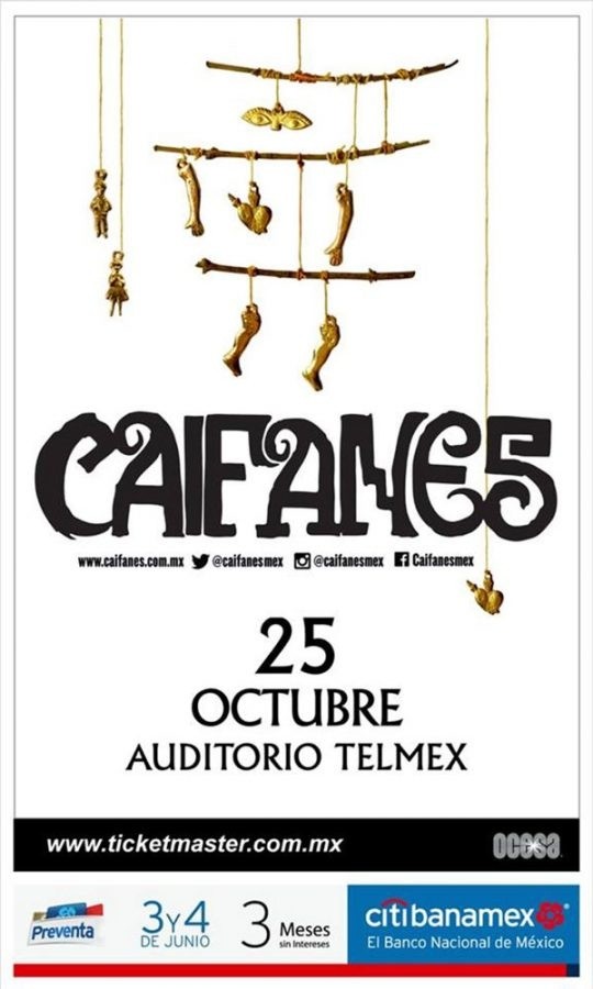 Caifanes vuelve a la ciudad para presentar su sencillo “Heridos”, con un concierto individual en el Auditorio Telmex, después de haberse presentado dentro de varios festivales.El baterista del grupo, Alfonso André, platicó las diferencias entre ambos tipos de conciertos: “La gente viene a vernos nada más a nosotros, en los festivales está esa espinita de tenerlos que ganar. Es una de las principales diferencias. También tenemos más tiempo para tocar, es un concierto para tocar más canciones que en un festival. Los dos son muy disfrutables, tocar en festivales nos gusta mucho por ver a los demás compañeros, y los shows cortos tienen su magia y su energía, hay que salir a tirar toda la carne al asador”.Con más tiempo para tocar en su concierto propio, Caifanes presentará una selección de su repertorio compuesto por cuatro discos de estudio, además de su más reciente sencillo titulado “Heridos”, tema esperado que lanzaron recientemente y que acabó con una sequía de material inédito desde “El nervio del volcán” (1994).Alfonso comentó respecto a esta nueva canción: “Todavía dan cosquillas en el estómago, es la más nueva, realmente no tanto, tiene un año. La hemos tocado en todas las presentaciones que hemos tenido. Cada vez ha tomado su personalidad, las canciones se van transformando a la hora de tocarlas fuera del estudio. La gente la ha adoptado muy bien, ya la cantan como si fuera cualquiera de las otras del repertorio, lo cual nos da mucho gusto”.Sobre la grabación de “Heridos”, el baterista recordó cómo sucedió: “Andábamos de gira en Estados Unidos, teníamos un espacio en un par de días entre una tocada y otra: decidimos meternos en caliente para acabar una idea que teníamos, pero que terminamos de hacerla en el estudio. Sabo nunca la había tocado, Diego, Saúl y yo sí la habíamos palomeado en algunos momentos, buscando un arreglo. Ya el arreglo final quedó cuando se integró Sabo, fue cambiando muy rápido ya dentro del estudio y tomó la personalidad de Caifanes. Nos dio gusto: dentro del estudio parecía que acabáramos de grabar hace una semana y no hace 15 o 20 años”.Después de esta experiencia, el grupo se quedó con ganas de regresar al estudio, motivo por el que están en la búsqueda de algunas fechas libres para regresar a grabar uno o dos temas más de la misma forma en que sacaron “Heridos”, afirmó el baterista.Sobre las próximas canciones que podrían estar lanzando pronto, Alfonso dijo: “Hay muchas ideas, hemos estado trabajando en distintos momentos desde el reencuentro en 2011. Buscamos un sonido que no suene viejo, pero que no deje de sonar a Caifanes. Es un balance delicado. Hay muchas ideas de canciones, sí hay un par en la mira que podrían ser las próximas. La mayoría son de Saúl, como siempre, es el compositor de casi todo el material. Todos tenemos ideas, le damos otras salidas: yo tengo un par de discos como solista, Saúl Hernández también, Diego Herrera hizo un disco hace unos años, Sabo Romo con el ‘Rock Sinfónico’... Eso nos ayuda a no estar tan ensimismados. Nos damos nuestros tiempos, nuestros descansos: luego regresamos a tocar con la banda. Creo que esa es una de las fórmulas del éxito y de que sigamos juntos”.