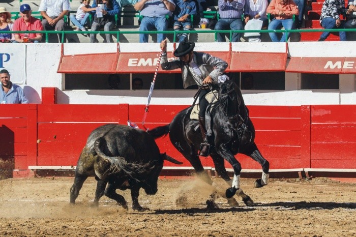 Por orden de aparición, que no de importancia, narraré primero lo que ocurrió con el rejoneador español. Con los dos primeros toros de su lote, que él escogió para esta tarde, no hizo nada. Fueron dos toros de la ganadería de La Estancia, descastados, mansos, distraídos, sin fuerza y sin recorrido. Uno de ellos, de malas ideas, buscaba el cuello del caballo. A los dos los mató mal, pinchando y colocando el rejón de muerte de manera contraria en uno y trasera en otro, teniendo incluso que descabellar al primero.