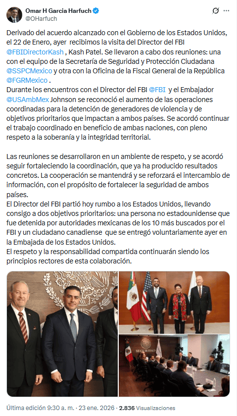 El exatleta olímpico canadiense Ryan Wedding, uno de los traficantes más buscados de Estados Unidos y que ha sido comparado con Joaquín "El Chapo" Guzmán, fue detenido este viernes 23 de enero, de acuerdo con la cadena de televisión estadounidense NBC News.El medio no señaló dónde se produjo la detención de Wedding, pero las autoridades estadounidenses creían que estaba escondido en México, protegido por el Cártel de Sinaloa.Momentos después, el secretario de Seguridad Pública y Protección Ciudadana de México, Omar García Harfuch, informó en sus redes sociales que ayer se tuvo en el país la visita del Director del FBI, Kash Patel, quien hoy viajó a Estados Unidos llevando consigo a dos de los objetivos prioritarios, entre ellos "una persona no estadounidense que fue detenida por autoridades mexicanas de los 10 más buscados por el FBI y un ciudadano canadiense que se entregó voluntariamente ayer en la Embajada de los Estados Unidos", sin precisar que se tratara del exatleta.En sus redes sociales, la fiscal general de Estados Unidos, Pam Bondi, dijo que Wedding fue trasladado en avión a Estados Unidos, donde enfrentará la justicia.Bondi también resaltó que la detención es "un resultado directo del liderazgo en ley y orden del presidente Trump. Bajo @POTUS, los criminales no tienen refugio seguro".Para cerrar, señaló que "el director Patel ha trabajado incansablemente para llevar a los fugitivos ante la justicia. Estamos agradecidos a nuestro increíble embajador Ron Johnson y a las autoridades mexicanas por asistirnos en este caso".Ryan Wedding, de 44 años, representó a Canadá en los Juegos Olímpicos de Invierno de 2002 en Salt Lake City (Utah, Estados Unidos) en la modalidad de snowboard.Sin embargo, años después, era buscado por el FBI por cargos de dirigir una organización transnacional de tráfico de drogas responsable de importar alrededor de 60 toneladas de cocaína al año a Los Ángeles a través de camiones semirremolque desde México, dijo anteriormente la fiscal general, Pam Bondi, en una conferencia de prensa hace algunos meses.Por su parte, el director del FBI, Kash Patel, había comparado a Wedding con el fallecido narcotraficante colombiano Pablo Escobar y el mexicano Joaquín "El Chapo" Guzmán, líder del Cártel de Sinaloa en nuestro país.En marzo de 2025, Wedding fue agregado a la lista de los "Diez más buscados" del FBI y había una recompensa de 15 millones de dólares por información que condujera a su arresto o procesamiento. Las autoridades mexicanas incautaron en 2025 docenas de motocicletas con un valor estimado de 40 millones de dólares, que se creía eran propiedad de Wedding. También incautaron dos medallas olímpicas, dos vehículos, estupefacientes, obras de arte y otros artículos en varios lugares de la Ciudad de México.Se espera que más tarde haya una conferencia de prensa sobre el caso.*Con información de EFE y SUN*Mantente al día con las noticias, únete a nuestro canal de WhatsAppOF