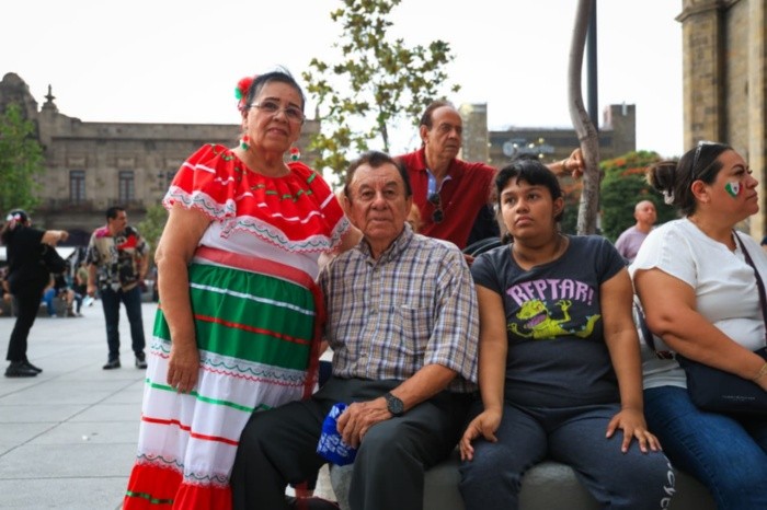 Cientos de personas se dieron cita este lunes en el Centro de Guadalajara para disfrutar de la tarde de verbena en torno a los festejos del 15 de Septiembre, en un ambiente lleno de banderas de México y vestimentas alusivas a la celebración.Claudia Almaraz y Cassandra Lozano fueron dos de las asistentes, quienes se dieron cita en el corazón de la ciudad antes de partir de regreso a Texas. Sus familias migraron a Estados Unidos desde que eran pequeñas, y hace dos años volvieron como parte de un intercambio universitario, que justo está por terminar, así que aprovecharon para vivir esta verbena.Acompañadas de elotes, diademas de flores y con maquillaje tricolor, estaban listas para esperar la Arenga."Dijimos, 'nunca hemos ido al Grito', entonces aprovechamos para venir y ver cómo se vive aquí en Guadalajara. En general nos gusta mucho la celebración de la Independencia, porque es muy diferente, por ejemplo, al 4 de Julio en Estados Unidos, aquí se siente mucha fiesta", dijo Claudia.La familia Hernández Figueroa se preparó, también con diademas y moños patrios, para la celebración del Grito de Independencia en el Centro de Guadalajara. Sus cinco integrantes llegaron temprano para disfrutar de la comida y los grupos musicales antes de la Arega que se insta desde el balcón principal del Palacio de Gobierno.Se organizaron a través del WhatsApp familiar, fueron por la tarde a comprar los accesorios que les faltaban, y se dirigieron juntos a la Cruz de Plazas."Y a mi me gustaría invitar a la gente a que venga a este tipo de celebraciones, porque a veces cuando la gente dice 'voy al Centro', algunas personas dicen '¿a qué? No, yo no voy, pero quiero invitarlos, a que que vengan, que festejen en familia en celebraciones como la de hoy. Digo, es una vez al año y pues deberían aprovechar para festejar juntos", dijo la joven Elizabeth Hernández.Una de las asistentes que más llamó la atención fue la señora Teresa Cobos, quien de pies a cabeza lució el verde, el blanco y rojo para no dejar pasar la oportunidad de demostrar su gusto por las fiestas patrias y su amor por México.Acompañada de su esposo y su nieta, se paseó por el Centro de Guadalajara previo al Grito de Independencia, su parte favorita de la celebración patria."Es que a mi me encanta venir aquí, así, interpretando el Día de la Independencia de nuestro querido México. Es un día tan especial para mí, porque conmemora a aquellas personas que derramaron su sangre para que yo ahorita, obtenga esta gran libertad, que yo tenga aquí y en mi bello y hermoso México, un País que es grande y tan precioso, tiene todos los elementos que necesitamos para poder vivir tranquilos y felices", manifestó la mujer.Por último, pero no menos importante, estuvo Ernestina Arredondo, quien portaba orgullosa su vestido típico y un bonito rebozo al hombro, gustosa de poder disfrutar este Día del Grito de Independencia."A mí siempre me gusta vestirme alusivo a este día festivo. Me encanta, y también me encanta mucho bailar, pero yo pienso que esta manera de vestirme, y venir aquí a celebrar la fecha es como aplaudir y dar las gracias a todos estos héroes que de verdad dieron la vida por nosotros, para que tuviéramos libertad", finalizó la mujer.NA