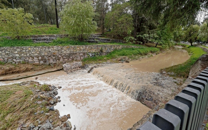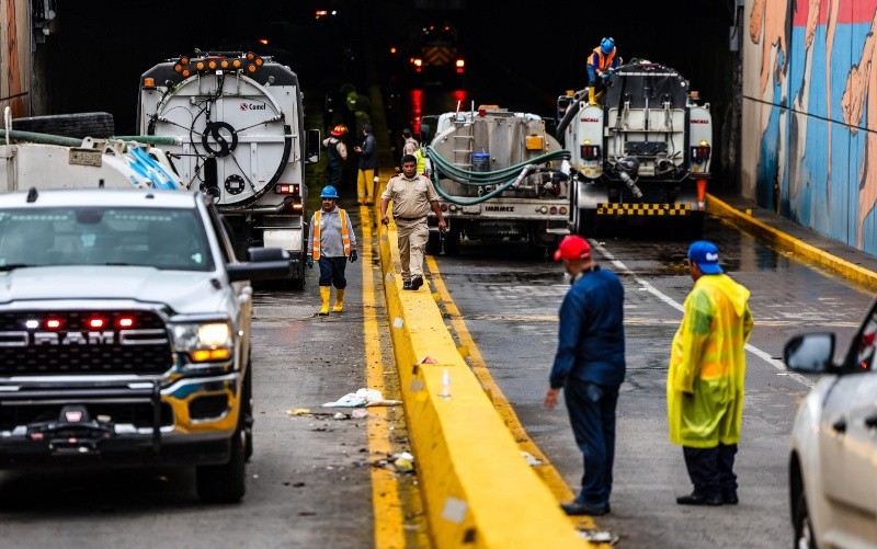 Las lluvias provocadas por los remanentes del huracán Erick generaron un caos vial y aumentaron el nivel de varios arroyos y canales en la Zona Metropolitana de Guadalajara, lo que representa un riesgo para la ciudadanía ante posibles desbordamientos, en caso de continuar las tormentas este fin de semana. La alerta: no acercarse para evitar muertes por arrastres.Una de las zonas más afectadas fue la avenida López Mateos, donde se cerraron los cruces con Mariano Otero, Cubilete, Conchitas, Moctezuma, La Asunción y Las Águilas durante varias horas por la mañana. El túnel de La Minerva también fue cerrado desde la madrugada y reabierto a las 14:00 horas. En Copérnico ocurrió lo mismo. “Esto es un caos. Llevo más de una hora y no puedo salir de aquí”, lamentó Arturo González, uno de los conductores afectados, quien llegó tarde a su trabajo.Otros pasos a desnivel que presentaron problemas fueron los de Américas y Ávila Camacho, así como Federalismo y España, todos cerrados por inundaciones. También Inglaterra y Niños Héroes.El comisario de la Policía Vial, Jorge Arizpe, informó que más de 500 agentes salieron a las calles para agilizar el tránsito.Por otra parte, aunque no se reportaron desbordamientos importantes, autoridades advirtieron del riesgo en varios cuerpos de agua. El canal de Patria provocó encharcamientos a la altura de Los Colomos, mientras que el arroyo Seco presentó un incremento significativo en su nivel en Zapopan.En Guadalajara, el vaso regulador de El Deán alcanzó 90% de su capacidad. “Pero se controló manualmente y se están abriendo las compuertas para evitar un desbordamiento”, informó Sergio Herrera, director operativo de Protección Civil de Guadalajara. La dependencia atendió 12 puntos de inundación, nueve reportes de vehículos varados y tres árboles caídos.Los arroyos Seco y El Garabato han provocado muertes y afectaciones en viviendas en otros temporales. El primero nace en la zona de Lomas de la Primavera y atraviesa colonias de Zapopan y Tlaquepaque antes de desembocar en la presa de Las Pintas. En Zapopan se han detectado más de tres mil 500 viviendas construidas dentro de la zona federal del cauce, que están en peligro ante las lluvias.También se consideran de riesgo el canal de Patria yaAntiguo Camino a El Rosario; en Tlajomulco, los arroyos Colorado, La Culebra, Santo Niño y Las Carretas; en Tlaquepaque, el canal de Las Pintas; y en Tonalá, el canal de Patria y Medrano, así como el arroyo de El Rosario.El año pasado fallecieron 16 personas por efectos del temporal. Ayer, no se reportaron víctimas.La meteoróloga Alma Delia Ortiz, del Instituto de Astronomía y Meteorología, advirtió que las lluvias podrían continuar durante el fin de semana por la dispersión de la nubosidad asociada a los remanentes del huracán. “Una vez que ‘Erick’ se empieza a debilitar, la nubosidad se disipa lentamente. Se espera cielo parcialmente nublado y algunas lluvias para hoy”.Actualmente, hay 12 túneles considerados de alto riesgo en la ciudad, donde el agua puede alcanzar alturas de los 1.5 a los seis metros, según datos del Instituto Metropolitano de Planeación, como en Inglaterra y Niños Héroes, Servidor Público y Periférico, Ávila Camacho y Juan Pablo II, Héroes Ferrocarrileros y Chicago, además de 8 de Julio y Washington.