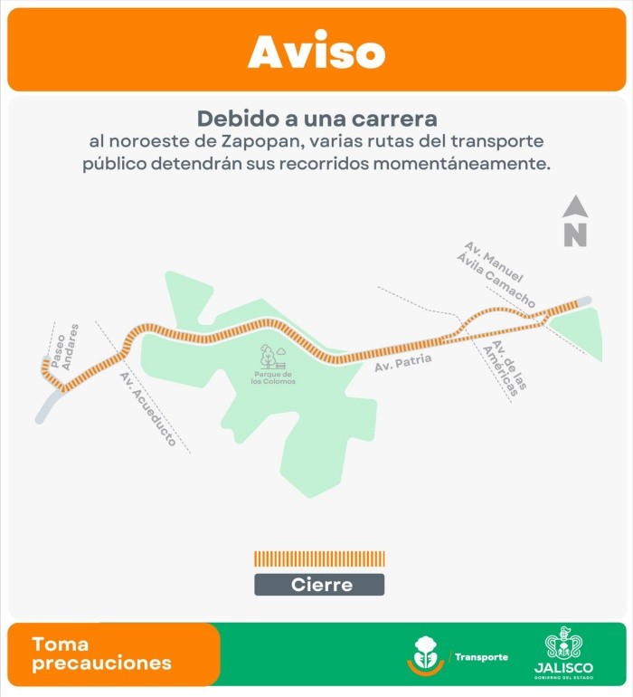 Mientras que el segundo evento deportivo será en Zapopan, se cerrará Avenida Patria y Paseo Andares.