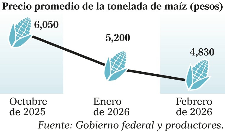 Tras los bloqueos carreteros que paralizaron al menos 17 Estados del país, productores de maíz denuncian que los acuerdos pactados con el Gobierno federal no se han cumplido. Acusan que no han logrado comercializar sus cosechas y, en consecuencia, tampoco han recibido los apoyos económicos prometidos para mitigar las pérdidas que detonaron aquella crisis.Las protestas, que se extendieron por Entidades como Jalisco, Guanajuato y Michoacán, obligaron a instalar mesas de negociación. El compromiso fue otorgar un apoyo complementario por tonelada -anunciado en 950 pesos- y establecer mecanismos para mejorar el precio de comercialización. Sin embargo, los productores sostienen que la situación no sólo no se resolvió, sino que se agravó. Julio César Cortés, agricultor del Bajío, afirmó que actualmente hay más de un millón de toneladas de maíz almacenadas en bodegas sin poder venderse. “Hay parcelas que ni siquiera se han cosechado porque no hay dónde guardar el grano. El problema se intensificó en lugar de resolverse”. De no levantarse la producción, advierten, el maíz puede echarse a perder, lo que implicaría pérdidas totales para cientos de familias.Lamenta que el apoyo prometido no ha llegado. “De los 950 pesos que nos dijeron que darían como complemento, no hay un solo productor que haya recibido un centavo”.El origen del conflicto radica en el desplome de los precios. Mientras los productores exigían un precio de garantía de entre seis mil 500 y siete mil 200 pesos por tonelada -para cubrir costos de semillas, fertilizantes, herbicidas y jornales-, en el mercado se está pagando por debajo de los cinco mil pesos. Héctor Iván del Toro, académico de la Universidad de Guadalajara, explicó que incluso los precios más altos detectados rondan los cinco mil 200 pesos.La consecuencia, subrayan los quejosos, es una espiral de endeudamiento. Uriel Ortega, otro productor, describió el panorama como asfixiante: “Estamos vendiendo por debajo del costo de producción. Muchos ya arrastramos cuatro años de deudas y algunos han tenido que vender tierras para pagar lo que deben”.En medio de la falta de respuesta federal, sólo el Gobierno de Jalisco y los municipios de Tlajomulco, Zapopan y Tala han implementado apoyos o subsidios locales para amortiguar el impacto, aunque los productores consideran que son insuficientes frente a la magnitud de la crisis.También reclaman condiciones de competencia más justas frente a países como Estados Unidos, donde los agricultores reciben subsidios en insumos y combustibles, lo que abarata sus exportaciones y presiona los precios nacionales.De no concretarse soluciones inmediatas, los productores advierten que retomarán las movilizaciones el 24 de febrero y no descartan protestas durante la Copa Mundial, en busca de que sus demandas sean finalmente atendidas. Productores de maíz amenazan con llevar bloqueos y protestas el 24 de febrero, debido a que denuncian que no les han comprado sus cosechas y por consiguiente, no han recibido los apoyos pactados con el Gobierno federal luego de los bloqueos carreteros y protestas del año pasado.El reclamo es porque no se está comercializando el grano de maíz que han recolectado tras la temporada de cosecha al argumentar que, tras los acuerdos con las autoridades, el Gobierno federal y los estados acordaron aportar 950 pesos como apoyo por tonelada de maíz para llegar a un precio de entre seis mil 050 y seis mil 150 pesos.Pero Julio César Cortés, productor de maíz, acusó que han bajado los precios por tonelada, reduciendo las ganancias y provocando pérdidas por la producción.“Empezaron pagándonos a cinco mil 200 pesos (sin el subsidio), fue el acuerdo que se llegó cuando pasaron los bloqueos. Nada más se respetaron esos cinco mil 200 lo que restó el 2025, entrando el 2026, ya nos empezaron a pagar cinco mil, luego, bajó a cuatro mil 800, siguiendo con el tema de que estaba el precio, pero no la comercialización”.El problema es que hay más de un millón de toneladas del grano que está en bodegas, acumulados y sin poder venderse, al igual que la producción que tampoco ha podido ser cosechada. De no cosecharse el maíz, se va a echar a perder y por lo tanto, se pierde la producción, mientras que en las bodegas, quienes lo resguardan, apenas tratan de mantenerlo. Y la falta de ventas ha impedido la entrega de apoyos por parte de las autoridades ya que acusó que “de los 800 pesos que prometieron de apoyo, no ha habido un productor que le llegue un centavo de ese acuerdo”.Esto también lo advirtió Uriel Ortega, también productor de maíz, quien cuestionó que la entrega de apoyos de las autoridades está condicionada a la comercialización del maíz, pero los bajos precios del grano importado los pone en desventaja. “El maíz de Estados Unidos vale cuatro mil 800 pesos la tonelada y a nosotros nos lo pagan en el precio que se estableció en cinco mil 200 y dice el empresario que cómo va a comprar el precio del maíz y se ahorran 400 pesos por tonelada. Aquí no están comprando el maíz nacional y por ende, no nos van a dar el apoyo porque no se comercializó el maíz”.Por ello, además de la protesta que pueden llevar a cabo para el día 24 de febrero, adelanta que se ha puesto sobre la mesa realizar manifestaciones durante la Copa Mundial de 2026. El inicio de 2026 fue adverso para los productores mexicanos de granos. Datos del Grupo Consultor de Mercados Agrícolas (GCMA) reportan caídas en los precios de maíz, trigo, soya y pasta de soya, tras el ajuste al alza en pronósticos de producción e inventarios en Estados Unidos. El nuevo reporte del Departamento de Agricultura anticipa mayores cosechas y presión bajista en los mercados.En México, el escenario se agrava con más de un millón de toneladas de maíz almacenadas y sin comercializar. Productores señalan que, pese al acuerdo oficial de 6 mil 150 pesos por tonelada, persisten pérdidas y f
