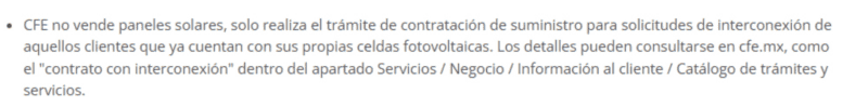 Ante recientes publicaciones en medios de comunicación y plataformas digitales que afirman que la Comisión Federal de Electricidad (CFE) tiene programas para "regalar paneles solares", es necesario aclarar que esta información carece de veracidad.La CFE no entrega ni comercializa paneles solares de manera gratuita. Tampoco lleva a cabo ningún proceso en sus Centros de Atención a Clientes que esté relacionado con la entrega sin costo de estos equipos.Así lo deja ver la CFE a través de su portal oficial, donde aclara que lo que sí realiza la empresa es el trámite correspondiente para la conexión a la red eléctrica de aquellos usuarios que ya cuentan con sistemas fotovoltaicos propios. Este procedimiento, denominado “contrato con interconexión”, puede ser consultado en el portal oficial de la CFE (cfe.mx), específicamente en el apartado Servicios > Negocio > Información al cliente > Catálogo de trámites y servicios.En comunidades rurales o zonas urbanas con altos niveles de marginación y sin acceso a la red eléctrica, CFE Distribución instala paneles solares, pero únicamente como parte de proyectos de electrificación que se desarrollan en coordinación con la Secretaría de Energía. Estos esfuerzos forman parte de programas sociales como el que está vinculado al Fondo de Servicio Universal Eléctrico (FSUE).Por otra parte, fideicomisos como el Fideicomiso para el Ahorro de Energía Eléctrica (FIDE) y el Fideicomiso para el Aislamiento Térmico (FIPATERM) sí ofrecen paneles solares mediante esquemas de financiamiento propios. En estos casos, el pago se distribuye en los recibos de luz emitidos por la CFE.BB