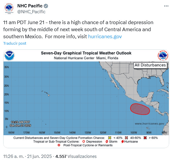 Esta es la probabilidad de que se desarrolle en los próximos 7 días, de acuerdo con el NHC y el SMN