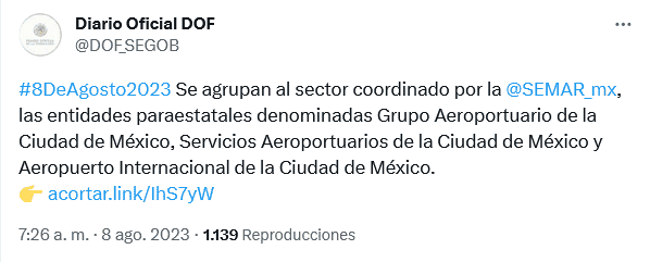 El Ejecutivo Federal emitió un Acuerdo por el que el "Aeropuerto Internacional de la Ciudad de México (AICM)", el "Grupo Aeroportuario de la Ciudad de México" y "Servicios Aeroportuarios de la Ciudad de México", que hasta ahora pertenecían a la Secretaría de Infraestructura, Comunicaciones y Transportes (SICT), pasan a manos de la Secretaría de Marina (Semar).El Acuerdo, publicado en el Diario Oficial de la Federación (DOF), argumenta que en años anteriores "hubo un descuido sistémico en las terminales aeroportuarias, ya que el servicio presentaba deficiencias, con áreas y equipamiento mal aprovechados, lo que generó actos destinados a comprometer la seguridad de la aviación civil y del transporte aéreo"."A pesar de contar con sistemas para monitorear amenazas y riesgos en el área operacional, los reportes no eran atendidos con prontitud; la seguridad de las operaciones y el cumplimiento estricto de la normativa en la materia era nula".El documento señala que es obligación del Estado mexicano contribuir al bienestar general de la población por medio de la implementación de estrategias nacionales e internacionales en la gestión de aeropuertos, a fin de facilitar los medios para el traslado de personas con seguridad y calidad, y de mercancías entre regiones.Subraya que la Secretaría de Marina, al tener como misión la protección de la soberanía de la Nación y la seguridad interior del país, coadyuva en las operaciones de vigilancia, inspección, apoyo y control en el recinto aeroportuario para neutralizar el tráfico de armas, drogas, divisas, mercancía ilegal y evitar el tráfico de personas.El Acuerdo remarca que la Estrategia Nacional de Seguridad Pública, publicada en el DOF, el 16 de mayo de 2019 y aprobada por el Senado, busca preservar la seguridad interior del país y garantizar la defensa exterior de México, aprovechar los recursos humanos, materiales e infraestructura que pueden aportar las Fuerzas Armadas en favor de la seguridad del país y reorientarlas para impulsar la colaboración entre la población civil al enfatizar el papel de estas como parte de la sociedad.Además, "como parte de dicha estrategia, se busca alinear todos los esfuerzos en materia de seguridad para enfrentar óptimamente los enormes desafíos que el Estado mexicano tiene en esa materia. Asimismo, se debe garantizar la adecuada coordinación entre las diversas instancias federales y estatales para impulsar esta estrategia en las entidades federativas y regiones del país, con pleno respeto al federalismo".El Acuerdo entrará en vigor a los sesenta días naturales siguientes a su publicación en el DOF y durante ese periodo, la SICT, en su calidad de aún coordinadora de sector de las entidades paraestatales denominadas "Grupo Aeroportuario de la Ciudad de México", S.A. de C.V.; "Servicios Aeroportuarios de la Ciudad de México", S.A. de C.V., y "Aeropuerto Internacional de la Ciudad de México", S.A. de C.V. "debe llevar a cabo la actualización del capital social de estas con base en los estados financieros auditados al cierre del ejercicio fiscal inmediato anterior, así como la transferencia de la totalidad de las acciones representativas del Gobierno federal, y demás acciones previstas en las disposiciones jurídicas aplicables".Las secretarías de Infraestructura, Comunicaciones y Transportes, y de Marina serán responsables del proceso de transferencia de los recursos humanos, financieros y materiales con que cuentan las entidades paraestatales involucradas, así como proporcionar la información necesaria para la integración de la Cuenta Pública del ejercicio fiscal que corresponda, en el ámbito de su competencia.Finalmente, se establece que las erogaciones que se generen con motivo de la entrada en vigor del Acuerdo se deben realizar con cargo a los presupuestos autorizados a cada uno de los ejecutores de gasto, según corresponda, mediante movimientos compensados, por lo que no se incrementará su presupuesto regularizable y no se autorizarán recursos adicionales para el presente ejercicio fiscal.OF