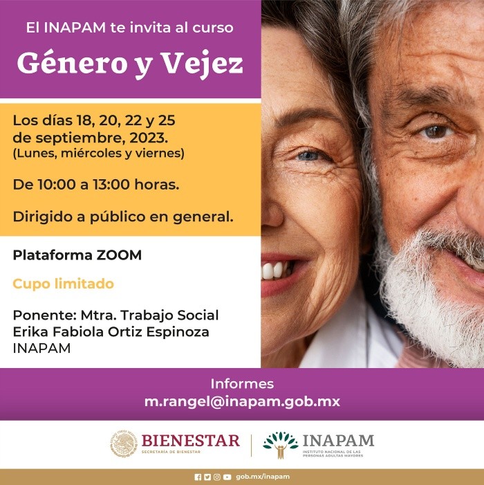 Con el fin de brindar apoyo a las personas adultas mayores surgió el Instituto Nacional de las Personas Adultas Mayores (INAPAM), organismo que brinda una buena cantidad de beneficios los cuales van desde descuentos en supermercados hasta promociones en servicios de salud y más.Y con motivo de seguir ofreciendo más apoyo a las persona de la tercera edad, Inapam ha informado sobre un nuevo beneficio al cual podrán acceder a partir del lunes 18 de septiembre de 2023.Si eres beneficiario Inapam la información que se te proporcionará es de tu interés.A través de su cuenta oficial de X (antes twitter) el instituto dio a conocer que este beneficio se trata de un curso titulado "Género y vejez" impartido por la maestra en Trabajo Social Erika Fabiola Ortiz Espinoza.Cuenta con 4 fechas, lunes 18, miércoles 20, viernes 22 y lunes 25 de septiembre vía Zoom con un horario de 10:00 a 13:00 horas. Además de los beneficiarios Inapam, también podrán acceder a este curso el público en general, ya sean los mismos familiares de los adultos mayores o cualquier persona que tenga interés en conocer sobre el tema.Para acceder a esta charla, aquellos que estén interesados deberán registrarse en Curso. Género y Vejez, llenar un formulario y listo, con ello podrás ingresar a la plática y aprender algo nuevo sobre esta etapa de la vida del ser humano.YC