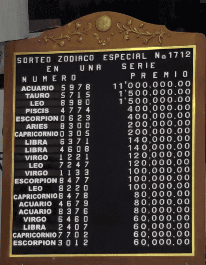 Cada domingo es una nueva oportunidad para tentar a la suerte con el Sorteo Zodiaco Especial de la Lotería Nacional, uno de los sorteos más esperados por los amantes del azar. En esta ocasión, la edición número 1712 se celebra este domingo 27 de julio de 2025, ofreciendo a los participantes la posibilidad de ganar un atractivo premio mayor.El Sorteo Zodiaco ha ganado popularidad entre los jugadores frecuentes gracias a sus importantes premios y su carácter conmemorativo.El premio mayor que estará en juego este domingo asciende a 11 millones de pesos, lo que representa una excelente oportunidad para quienes compren su cachito. Si la suerte te acompaña, podrías convertirte en uno de los grandes ganadores de este emblemático sorteo que semana tras semana mantiene viva la tradición y la esperanza de miles de personas.Participar es muy sencillo: puedes adquirir tu boleto en los puntos de venta autorizados o a través de la página oficial de la Lotería Nacional. Con tan solo 35 pesos por cachito, podrías ser el próximo afortunado en cambiar tu vida.Los resultados del Sorteo Zodiaco Especial se darán a conocer este domingo en punto de las 20:00 horas. Si participaste, no olvides consultar los números ganadores a través de EL INFORMADOR.Se han dado a conocer los números ganadores del sorteo. El premio mayor de 7 millones de pesos corresponde al signo acuario con el número 5978. SV