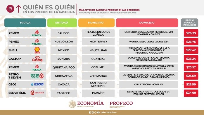 Según la Profeco, el precio promedio de la gasolina premium es de aproximadamente $24.67 por litro, mientras que la gasolina regular se sitúa en alrededor de $22.59 por litro.