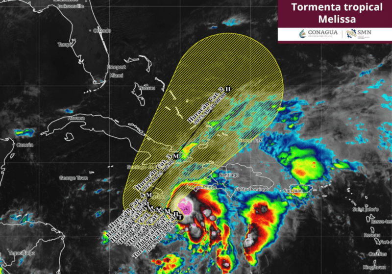 El SMN advirtió este sábado que la tormenta tropical "Melissa" sobre el mar Caribe permanece con un desplazamiento lento