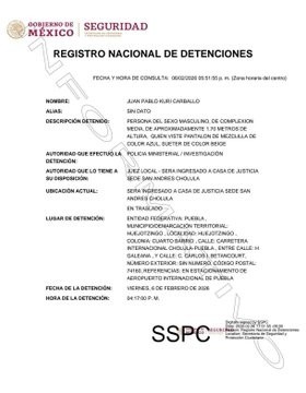 El exdiputado local y exdirigente del PVEM en Puebla, Juan Pablo Kuri Carballo, fue detenido por elementos de la Policía Ministerial señalado del presunto delito de violencia familiar.De acuerdo con el Registro Nacional de Detenciones, el político y empresario fue aprehendido en el Aeropuerto Internacional de Huejotzingo, Puebla. Posteriormente, fue trasladado a la Casa de Justicia de San Andrés Cholula, donde –según reportes policiales- enfrenta una acusación de violencia familiar. Cabe recordar que el nombre del político aparece en una denuncia de un empresario restaurantero que acusó a autoridades del municipio poblano de San Andrés Cholula e integrantes de la familia del político, por el despojo de uno de sus restaurantes, ubicado en el lujoso centro comercial Riona High Plaza de Angelópolis en la zona metropolitana de la ciudad de Puebla. El dueño del restaurante Fenotti, Armin Brandel, presentó tres denuncias ante la Fiscalía General del Estado, la Comisión Estatal de Derechos Humanos y la Contraloría municipal de San Andrés Cholula. En ellas señaló a funcionarios de dicho Ayuntamiento y a los empresarios Kuri, entre ellos al exdiputado local y exdirigente estatal del PVEM, Juan Pablo Kuri Carballo, de presuntamente despojarlo ilegalmente de su patrimonio, así como de amenazas y otros presuntos delitos. El empresario acusó una presunta red de colusión entre autoridades de San Andrés Cholula, encabezado por la alcaldesa Guadalupe Cuautle Torres y los políticos poblanos de la familia Kuri para despojarlo de su restaurante Fenotti de dicha plaza comercial que albergará el parque temático KidZania. EE
