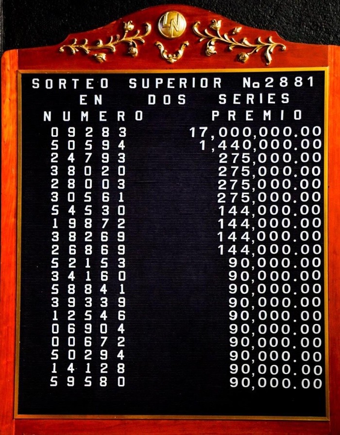La noche del viernes, la Lotería Nacional celebró el Sorteo Superior 2881, que entregó un premio total de 17 millones de pesos, repartidos en dos series de 8 millones 500 mil pesos cada una.El premio por cachito es de hasta 425 mil pesos.El número ganador del primer premio fue el 09283, cuya serie 1 fue puesta a la venta en Xalapa, Veracruz, y la 2 por medio de canales electrónicos.Se otorgaron reintegros a los billetes terminados en 3, excepto aquellos con las terminaciones 9283, 583 y 83, que obtuvieron premios mayores. Del mismo modo, se otorgaron reintegros a los terminados en 4, excluyendo a los números con cifras finales 0594, que en la lista de premios obtuvieron un monto mayor.La lista completa de números ganadores puede consultarse aquí.El billete del Sorteo Superior 2881 conmemoró el Día Internacional del Deporte para el Desarrollo y la Paz (6 de abril), destacando el deporte como motor de unión y bienestar. La Lotería Nacional destacó que, en México, la UNAM y algunas fundaciones impulsan el deporte con becas y eventos, promoviendo la inclusión, educación y desarrollo social.Melate 4204Chispazo 11966 de las 21:00 horasTris Clásico 39219 de las 21:00 horas