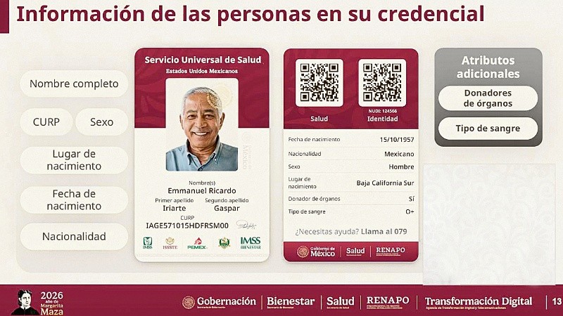 El Gobierno de México anunció el inicio de la credencialización del nuevo Servicio Universal de Salud, un proyecto que busca garantizar la atención médica para toda la población sin importar su afiliación institucional. El registro arrancará del 13 al 30 de abril y comenzará con personas de 85 años y más.La Presidenta Claudia Sheinbaum informó que en los próximos días se publicará el decreto presidencial que dará origen formal al modelo, cuyo objetivo es permitir que todos los mexicanos puedan atenderse en cualquiera de las instituciones públicas de salud: IMSS o ISSSTE.“Es un paso histórico el que estamos dando. Queremos que cualquier mexicana o mexicano pueda acudir a la institución que necesite y ser atendido, sin importar su derechohabiencia”.Como parte de la implementación, se desarrollará una base de datos compartida entre las instituciones y se desplegarán más de dos mil equipos para concretar el proceso de credencialización en todo el país. El subsecretario de Integración Sectorial y Coordinación de Servicios de Atención Médica, Eduardo Clark García, explicó que esta credencial será el primer paso para acceder a los servicios médicos gratuitos en toda la red pública. Además, funcionará como identificación oficial y sustituirá de manera gradual los carnets actuales del IMSS y del ISSSTE.La credencialización podrá realizarse en los dos mil 59 módulos de la Secretaría de Bienestar, cuyos puntos de atención podrán consultarse en el sitio oficial gob.mx/bienestar. El horario será de lunes a sábado, de las 09:00 a 17:00 horas.Para completar el registro, las personas deberán presentar identificación oficial, CURP, comprobante de domicilio reciente y un número telefónico de contacto. El proceso será gradual, organizado por rangos de edad y la letra inicial del primer apellido. El programa prevé que, desde el 1 de enero de 2027, arranque la primera etapa del intercambio de servicios entre instituciones. Incluirá atención universal en urgencias, continuidad hospitalaria, manejo de embarazos de alto riesgo y aplicación de protocolos como Código Infarto y Código Cerebro. También contempla universalizar el diagnóstico y tratamiento del cáncer de mama, así como dar continuidad a terapias para enfermedades crónicas y complejas.Durante el segundo semestre de 2027 se ampliará el intercambio a los servicios especializados, y para 2028 se proyecta consolidar el surtimiento universal de recetas, consultas de especialidad y hospitalización referenciada, además de fortalecer la atención primaria.El sistema contará con una aplicación móvil con la que se consultará la versión digital de la credencial, verificar la derechohabiencia en tiempo real y ubicar unidades médicas. En 2027, se incorporarán funciones como gestión de citas, historial clínico digital, seguimiento de programas de salud y servicios de teleconsulta con apoyo de inteligencia artificial.Con este proyecto, el Gobierno federal busca avanzar hacia un modelo de atención médica más eficiente, equitativo e integrado, con la meta de lograr el acceso universal a los servicios de salud en los próximos años. CT