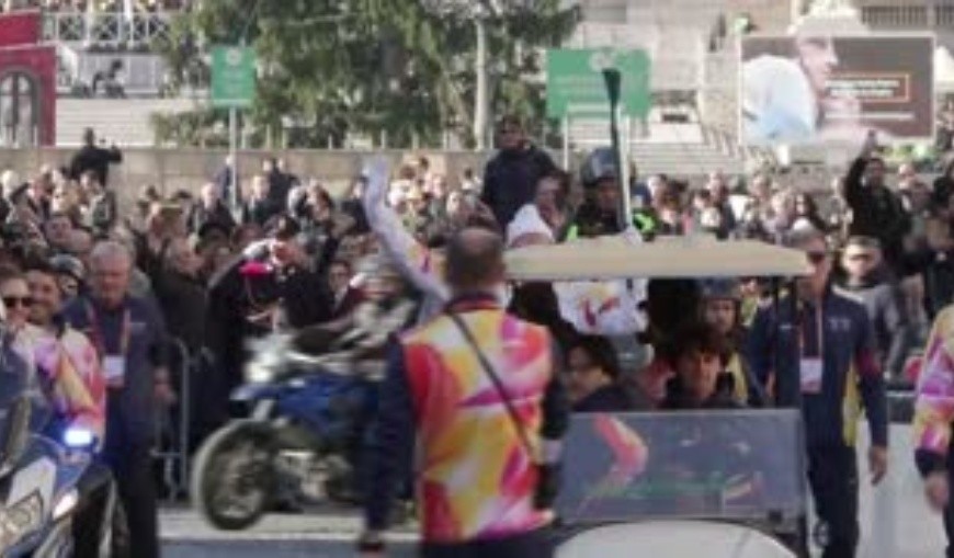 1 Desde el Estadio dei Marmi, en el Foro Itálico romano, la antorcha comenzó un trayecto que involucrará solo en la jornada de hoy a un total de 164 portadores